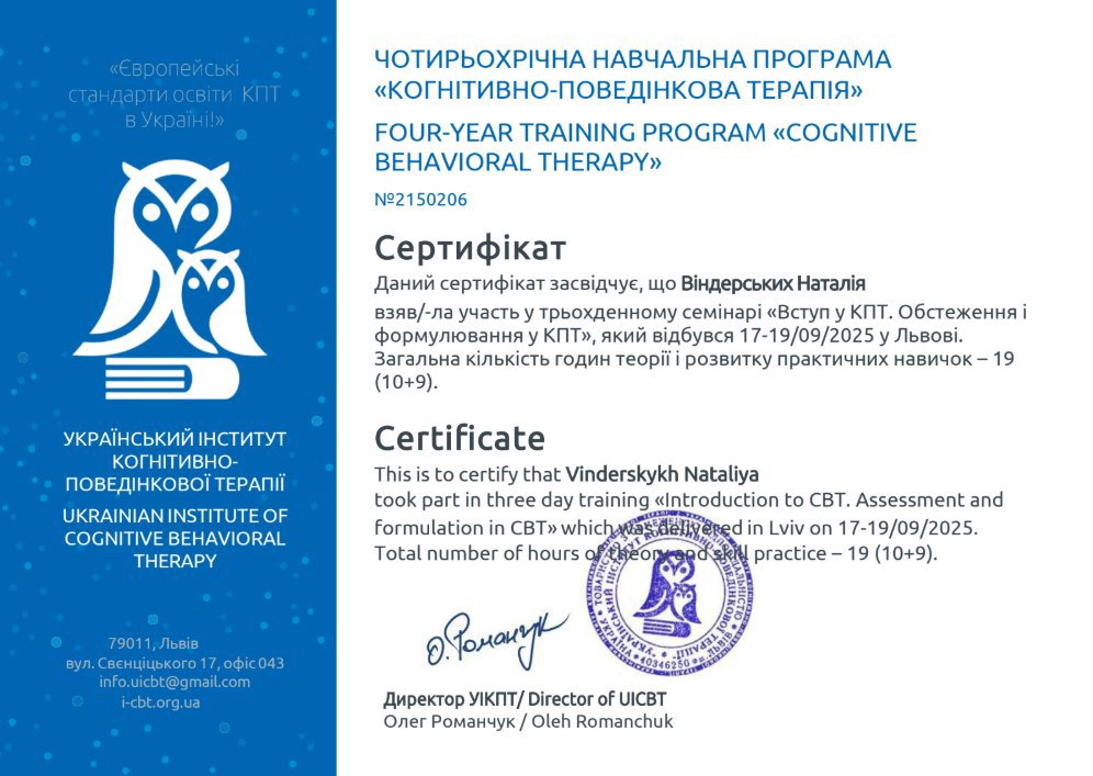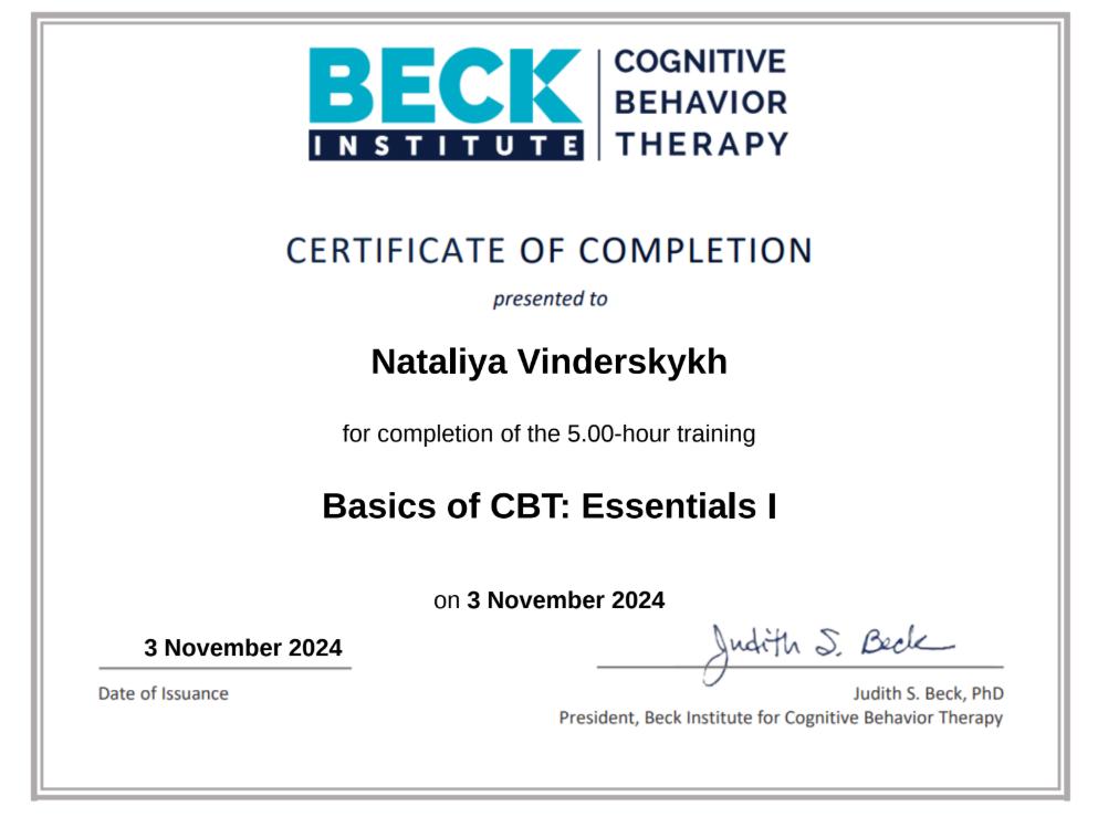 - Basics of CBT: Essentials I | Основи КПТ: Базовий курс I