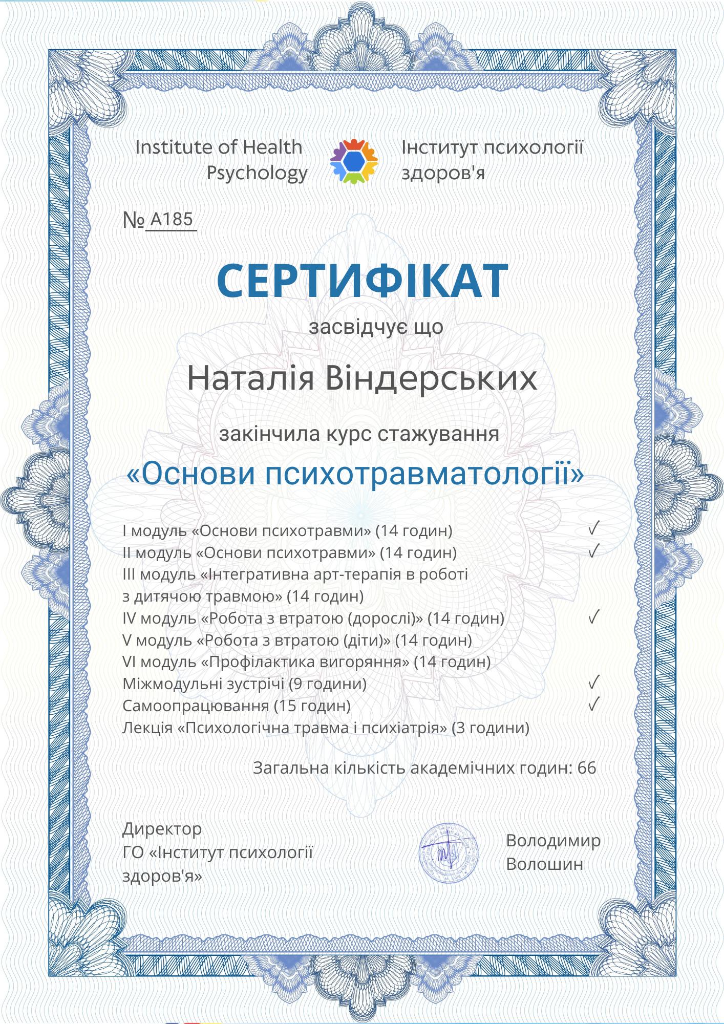 2022 Курс-стажування «Основи психотравматології», Інститут психології здоров’я