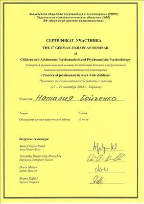THE "GERMAN-UKRAINIAN SEMINAR of Children and Adolescents Psychoanalysis and Psychoanalytic Psychotherapy Practice at psychoanalytic work with children