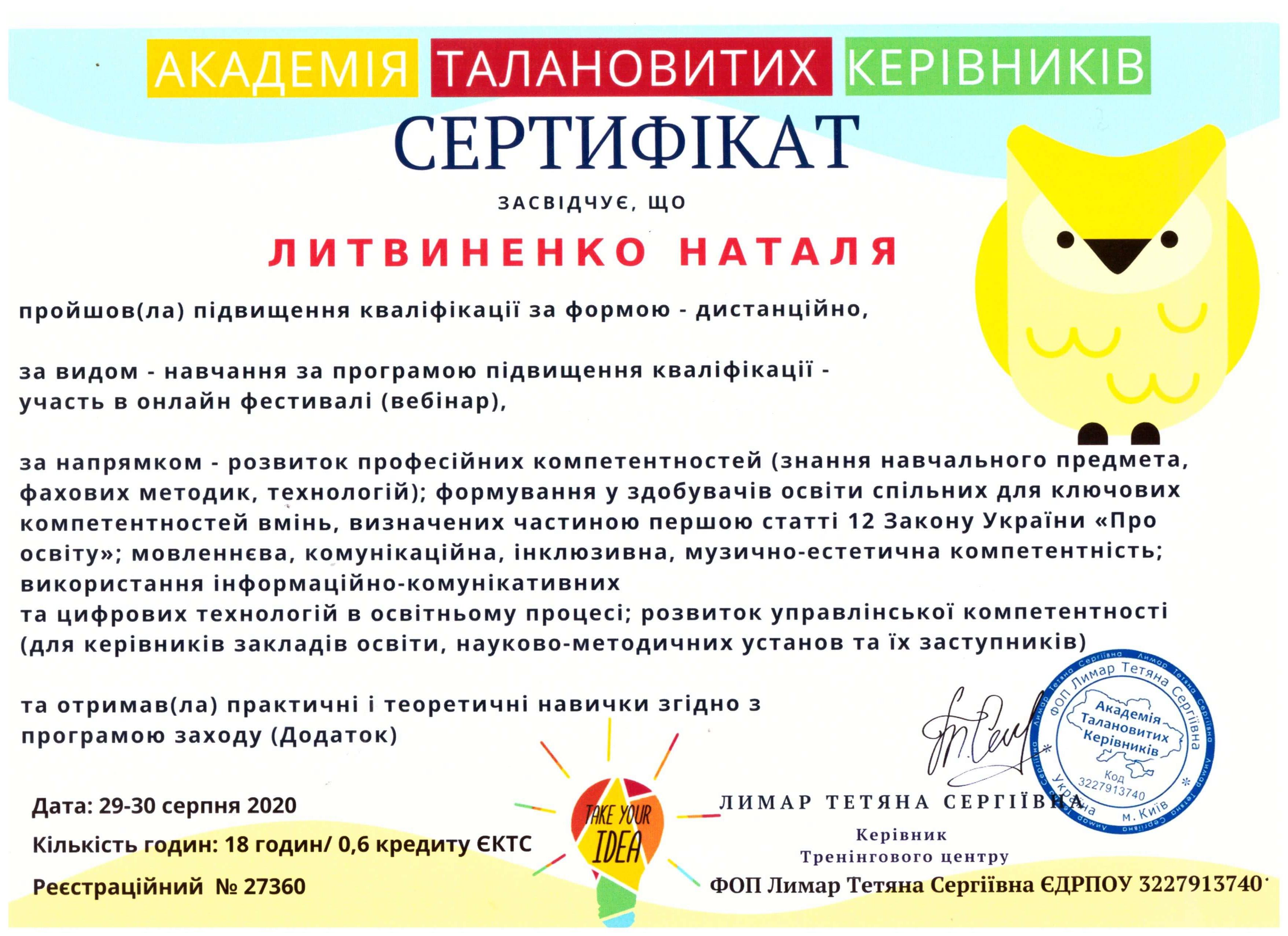 навчання за програмою підвищення кваліфікації - участь в онлайн фестивалі (вебінар)