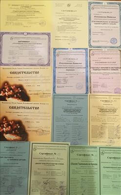 Базова освіта – Одеський Державний Університет ім. Мечнікова, клінічний психолог. Далі 1,2,3 щаблі Московського Гештальт Інституту, сертифікований психотерапевт. Спеціалізації-«Кризи та травми»; «Клінічний підхід у Гештальт-терапії»- 2 рази: один для терапевтів, другий для супервізорів; «Системний підхід та гештальт-терапія в роботі з сім'єю»- 2 рази: один для терапевтів, інший для супервізорів; «Тілесно-орієнтована терапія». Семінари з танатотерапії Володимира Баскакова.