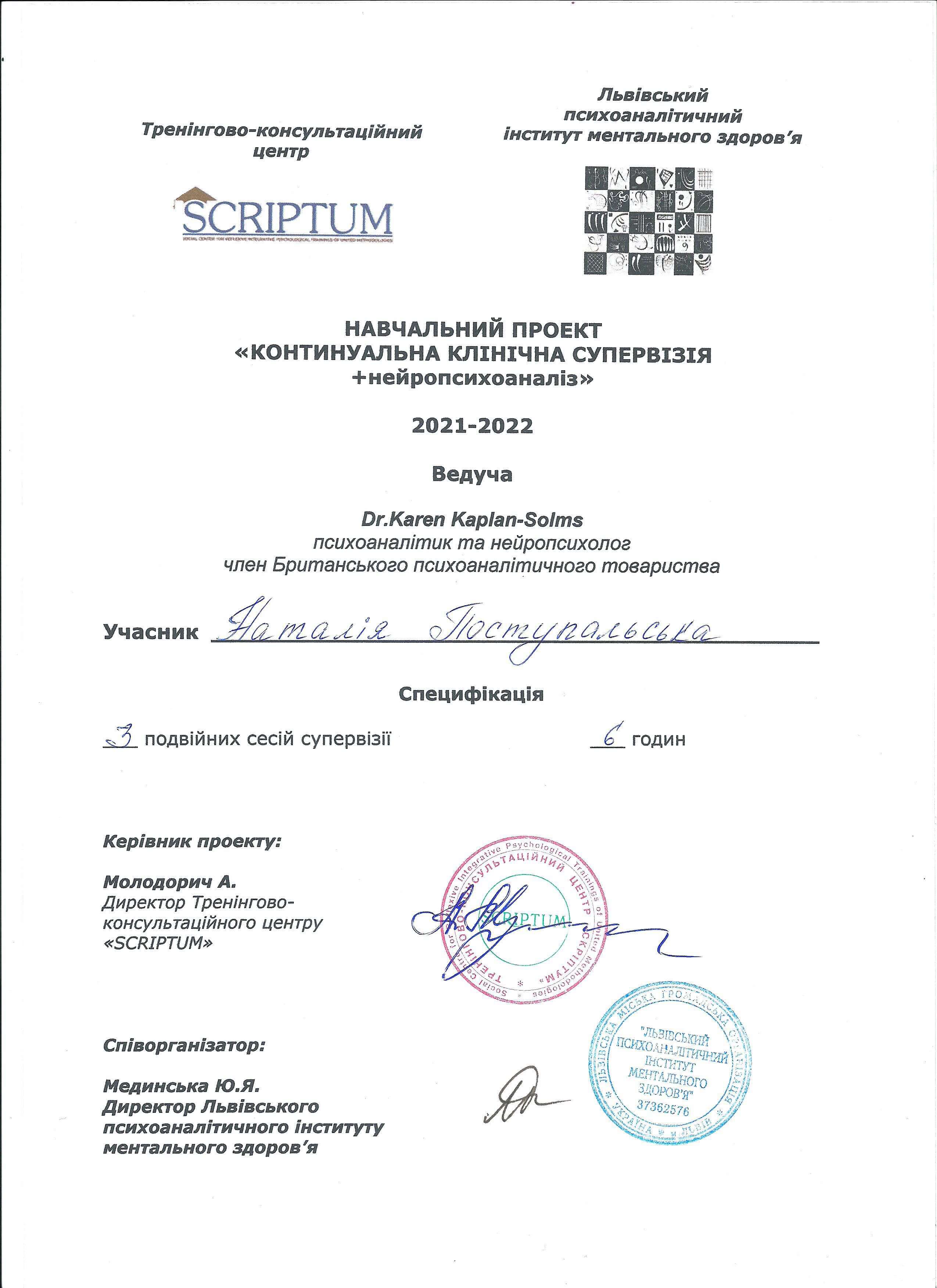 КОНТИНУАЛЬНА КЛІНІЧНА СУПЕРВІЗІЯ +нейропсихоаналіз