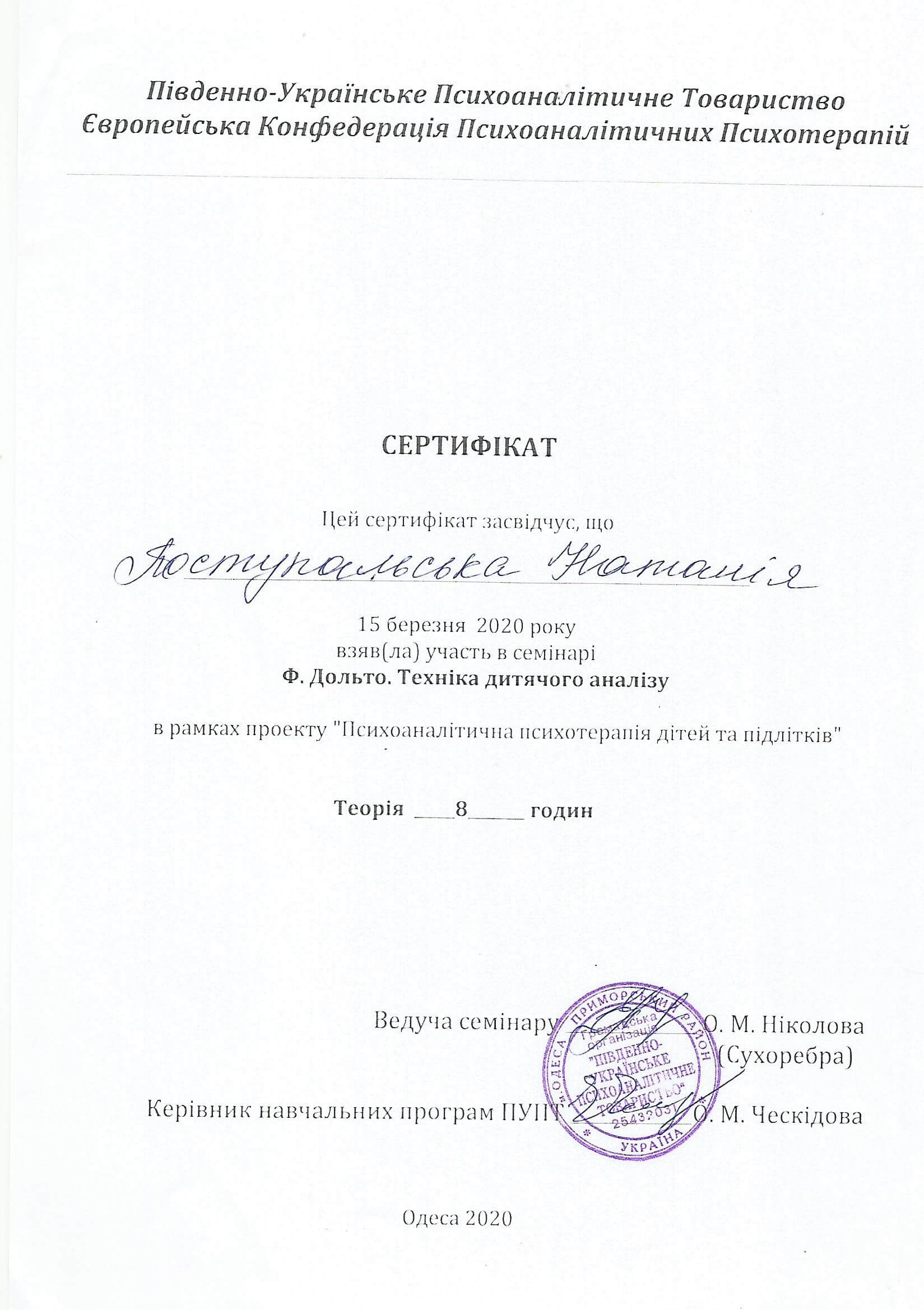 20-25 березня 2017 року, Кількість годин - 60