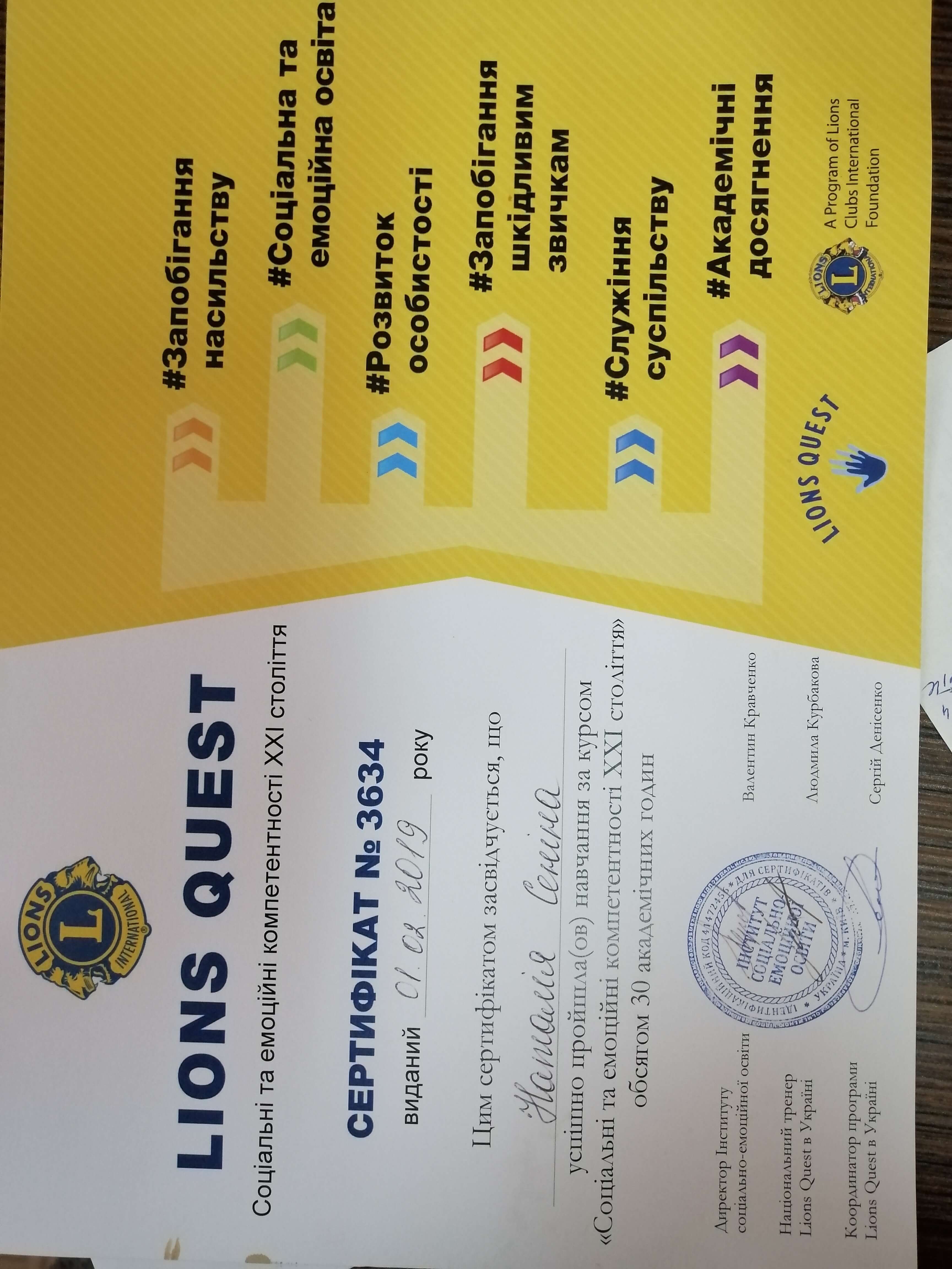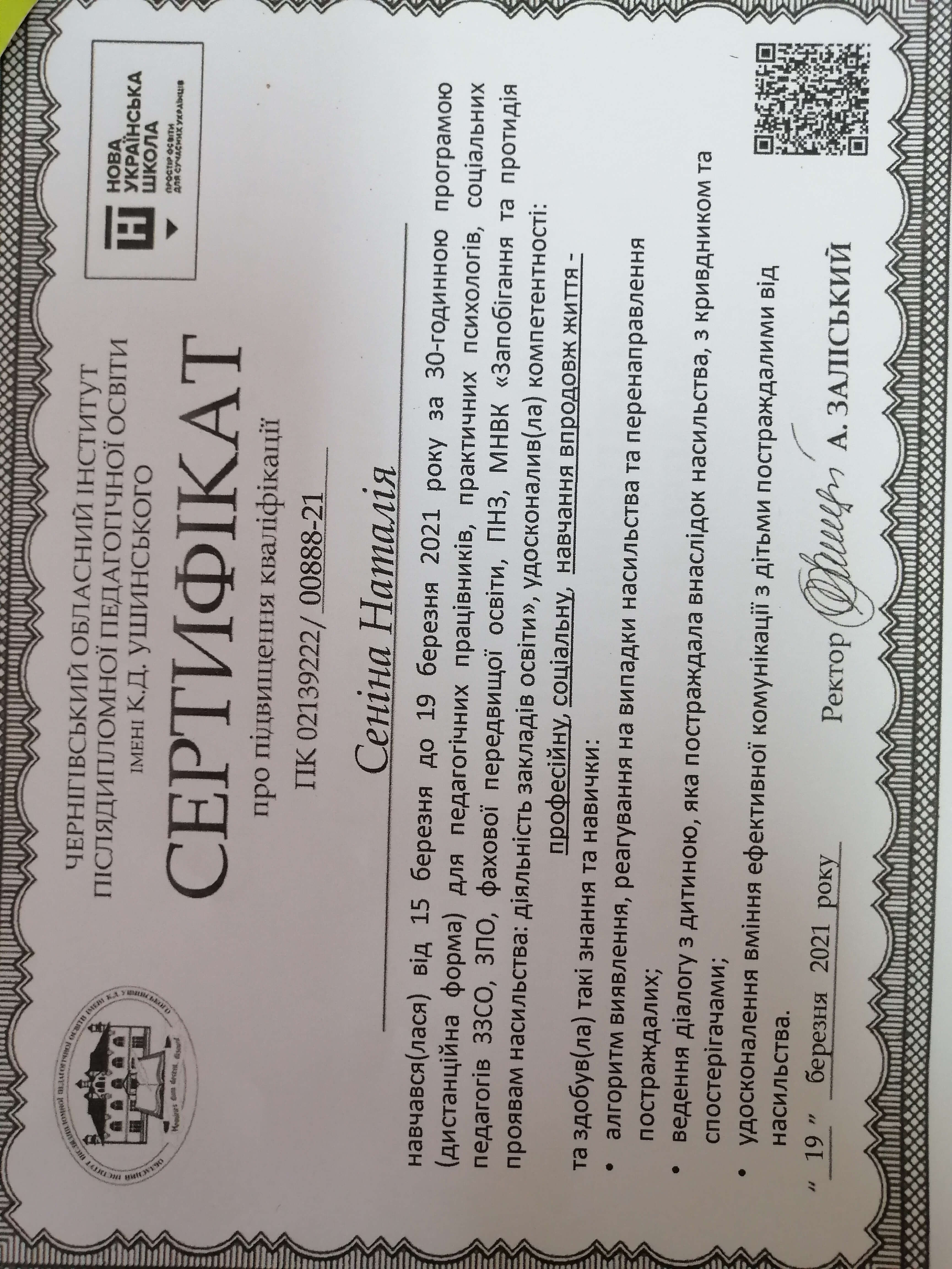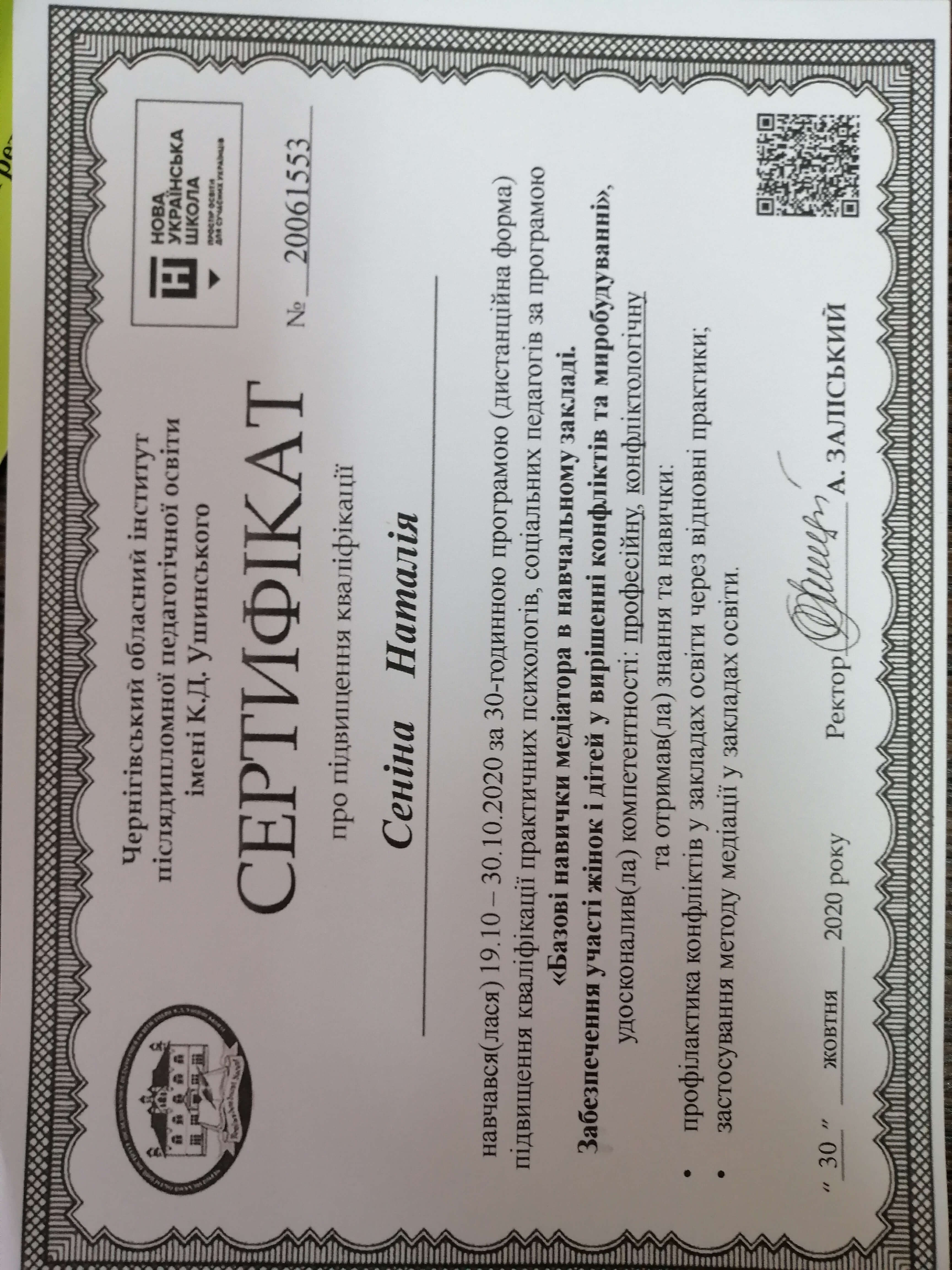 Сертифікати: