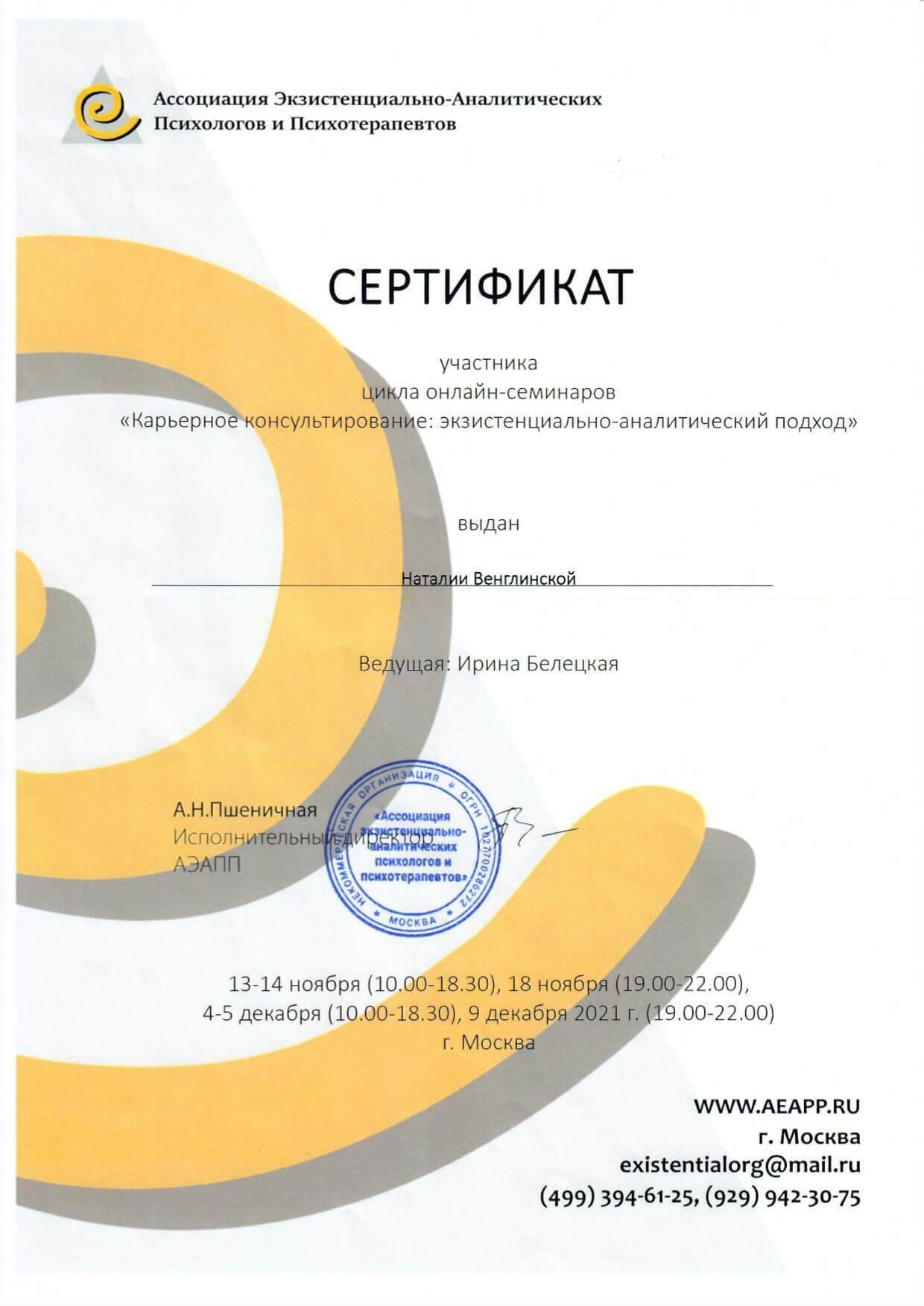 З 2020 року навчаюся в українсому представництві GLE International за фахом психотерапевт в Екзистенційному Аналізі