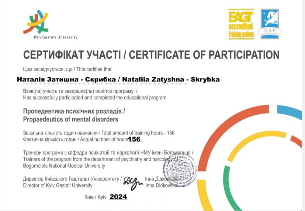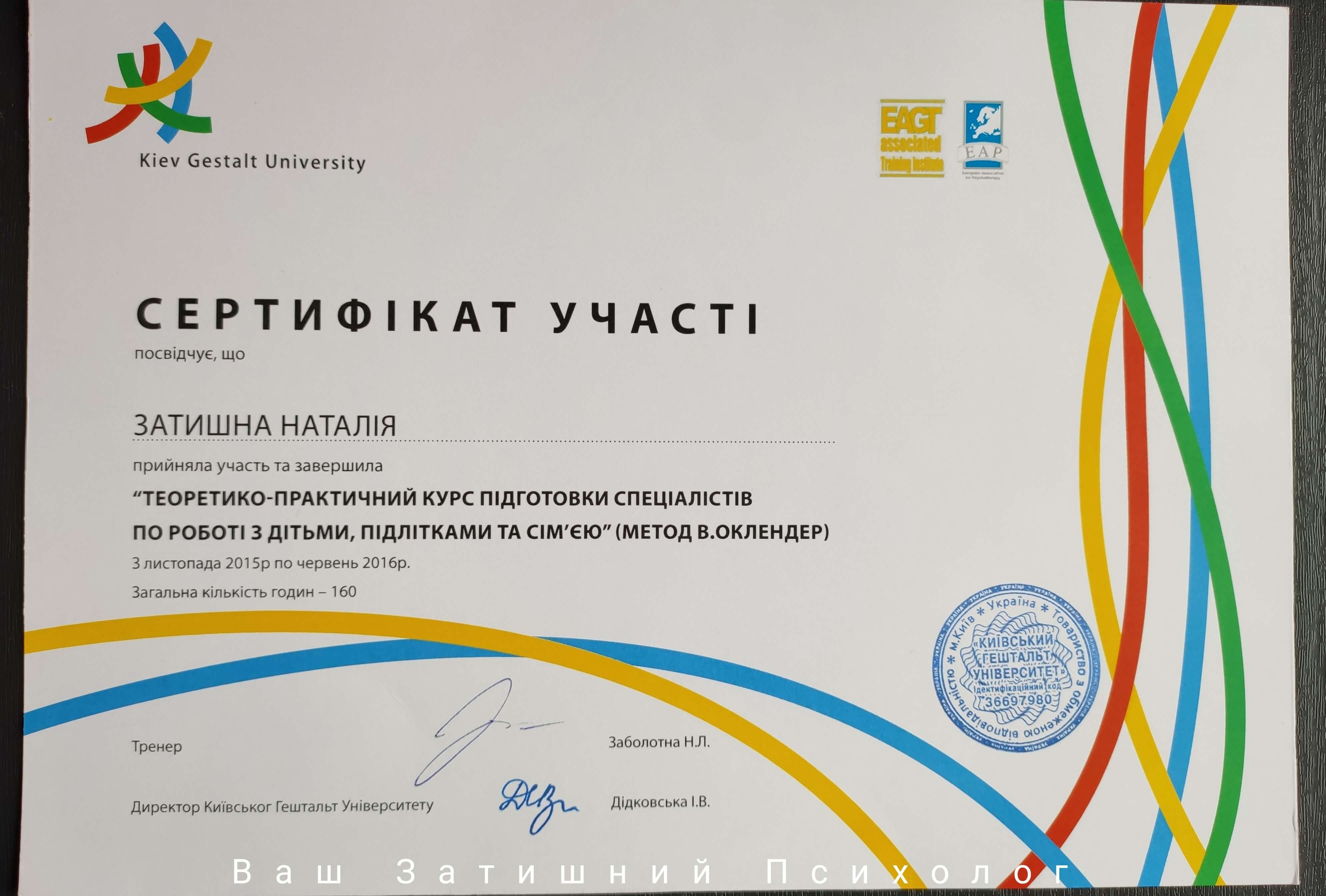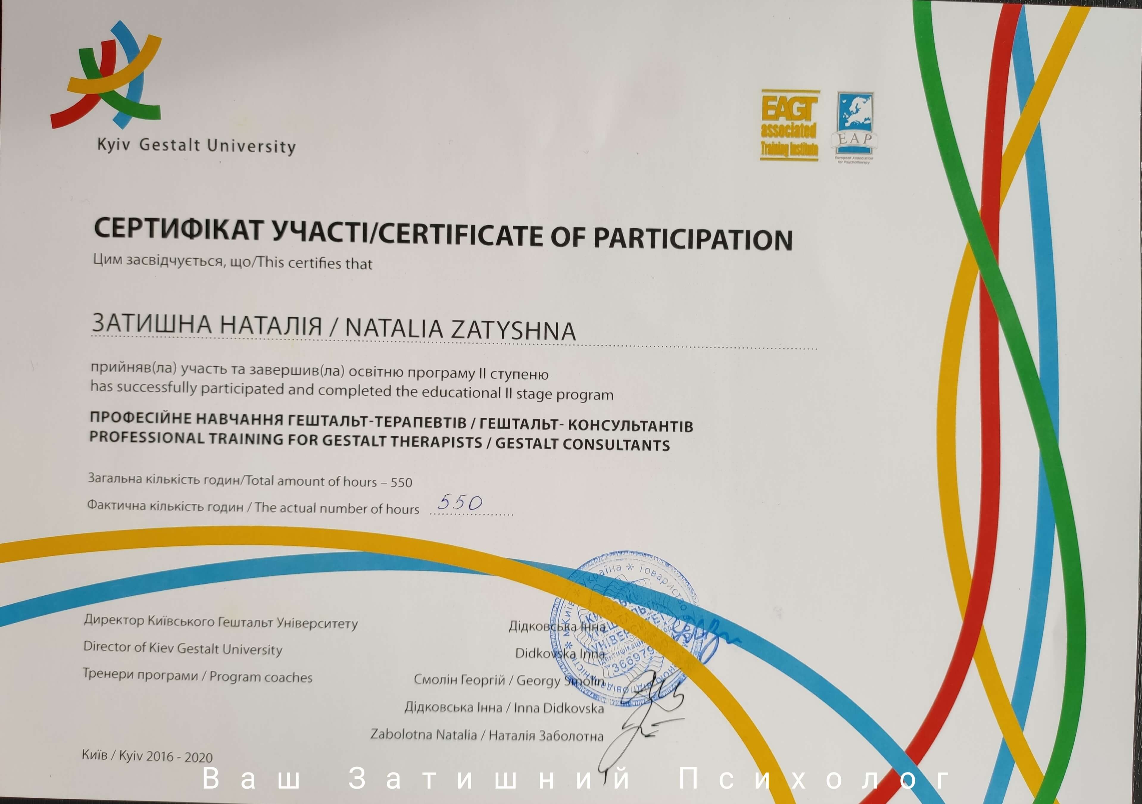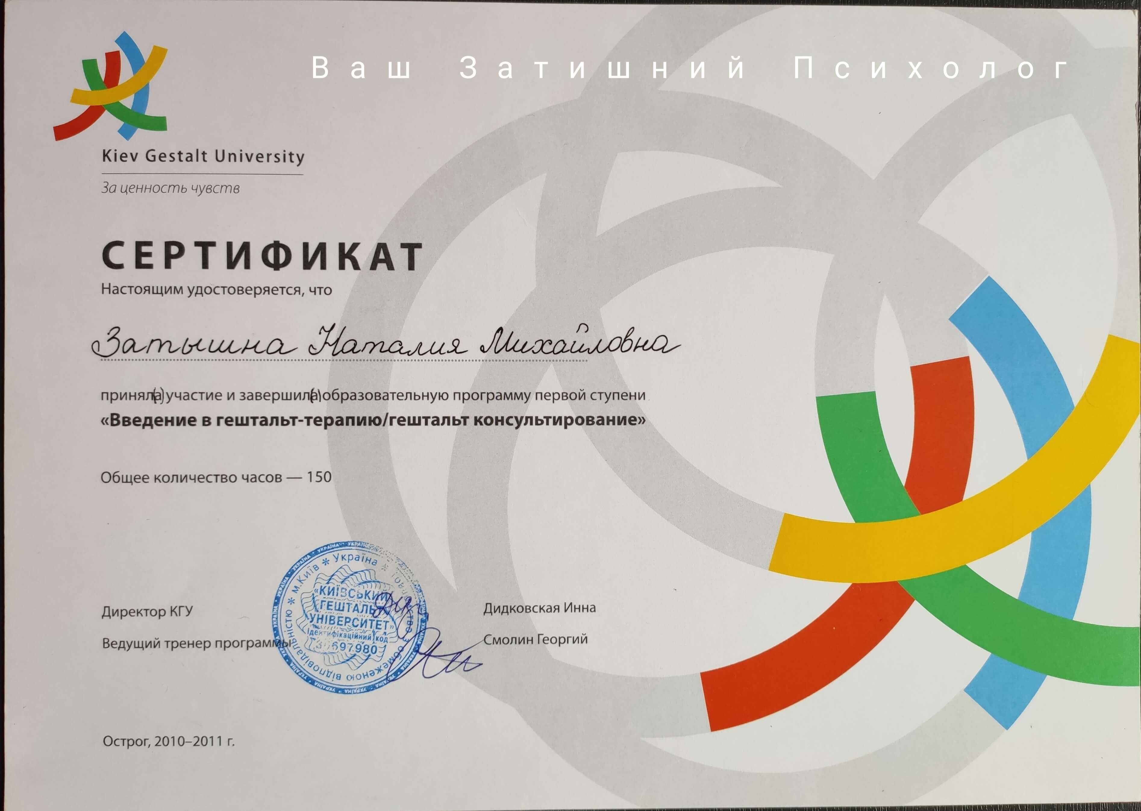 Київський гештальт університет - другий ступінь підготовки гештальт-терапевтів;