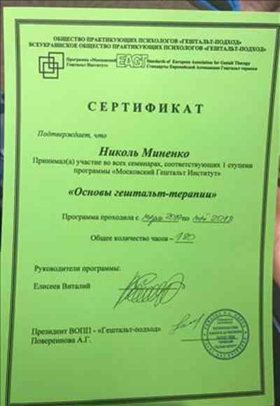 1 та 2 ступінь МДІ «Основи Гештальт-терапії» (програма підготовки психотерапевтів, що практикують у Гештальт підході)