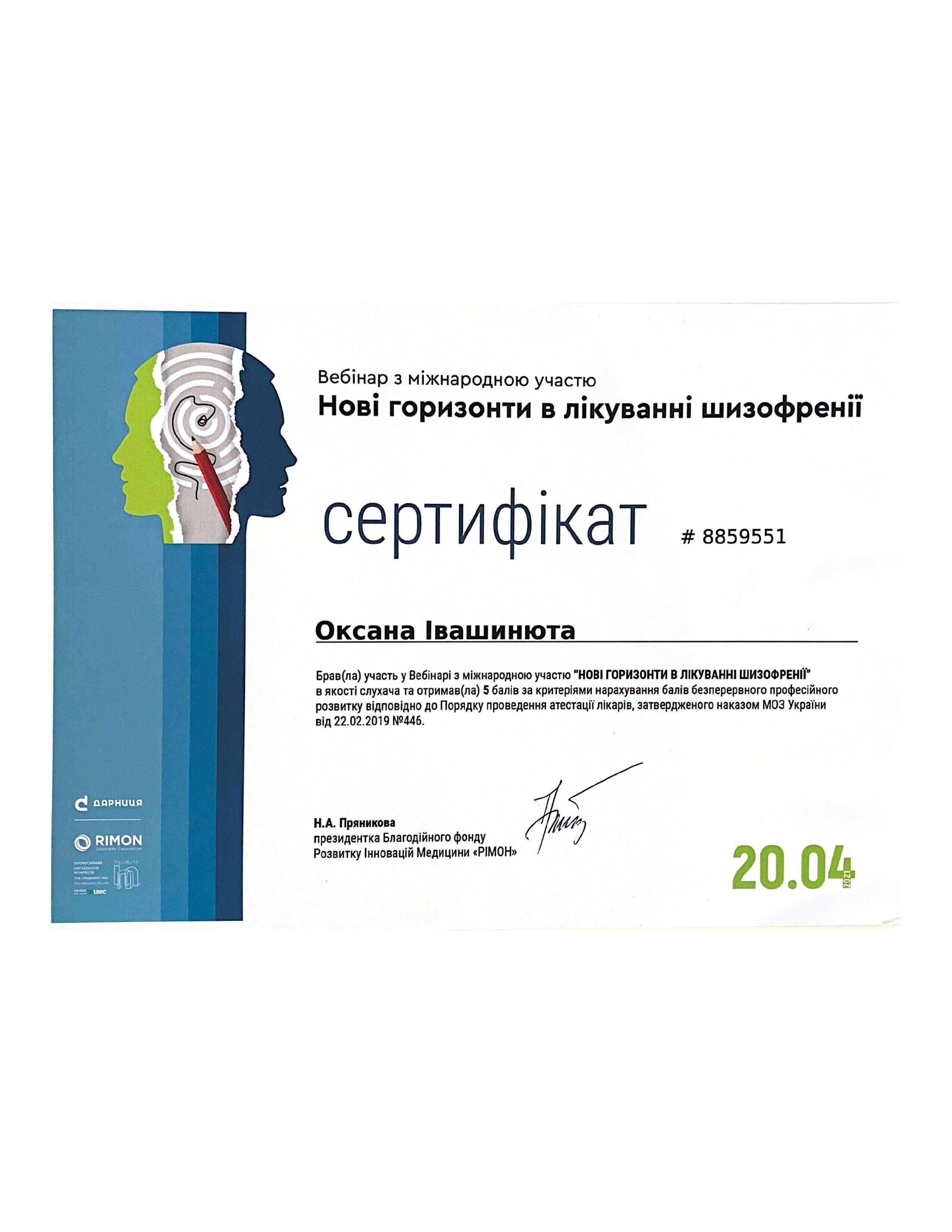 Вебінар з міжнародною участю “НОВІ ГОРИЗОНТИ В ЛІКУВАННІ ШИЗОФРЕНІЇ"