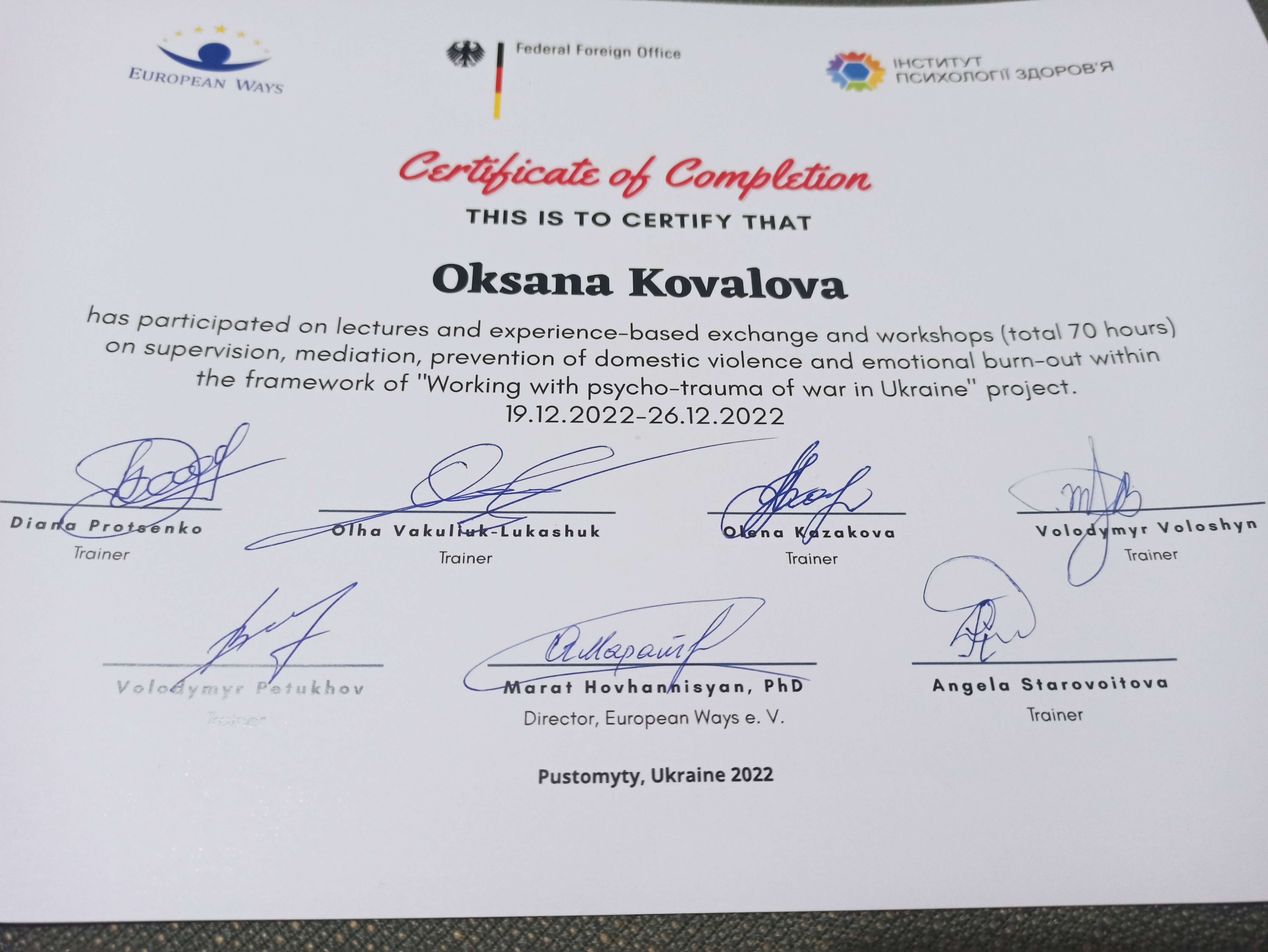 Гештальт-терапевт (Академія Погодіна, ВОППГП)