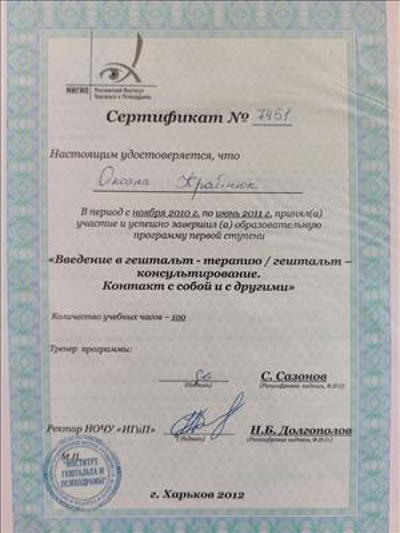 МИГиП: сертифікований гештальт-терапевт