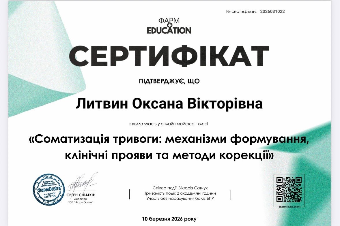 2026 – Соматизація тривоги: механізми формування, клінічні прояви та методи (ФАРМ EDUCATION)