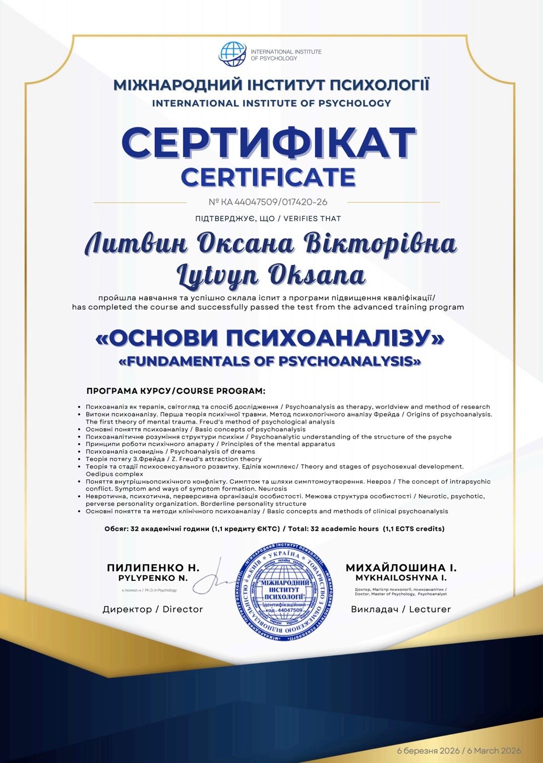2026 – Основи психоаналізу (Міжнародний інститут психології)