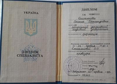 Вища медична освіта за спеціальністю фармація, вища освіта за спеціальністю психологія, навчання у гештальт-підході (понад 300 годин), сертифікат у галузі медіації, сімейної медіації