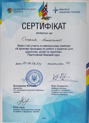 Участь та відпрацювання навичок у навчальних семінарах, робота в терапевтичних та супервізійних групах, особиста терапія та під супервізією