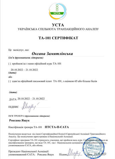 Курс Роксани Ящук «Транзакційного аналізу» - 12 годин