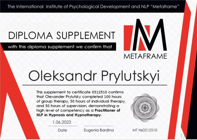 Працюю вже 14 років, Маю великий досвід і багато успішних кейсі, поєдную гіпнотерапію, НЛП терапію, Арт терапію, екзестанційну терапію.