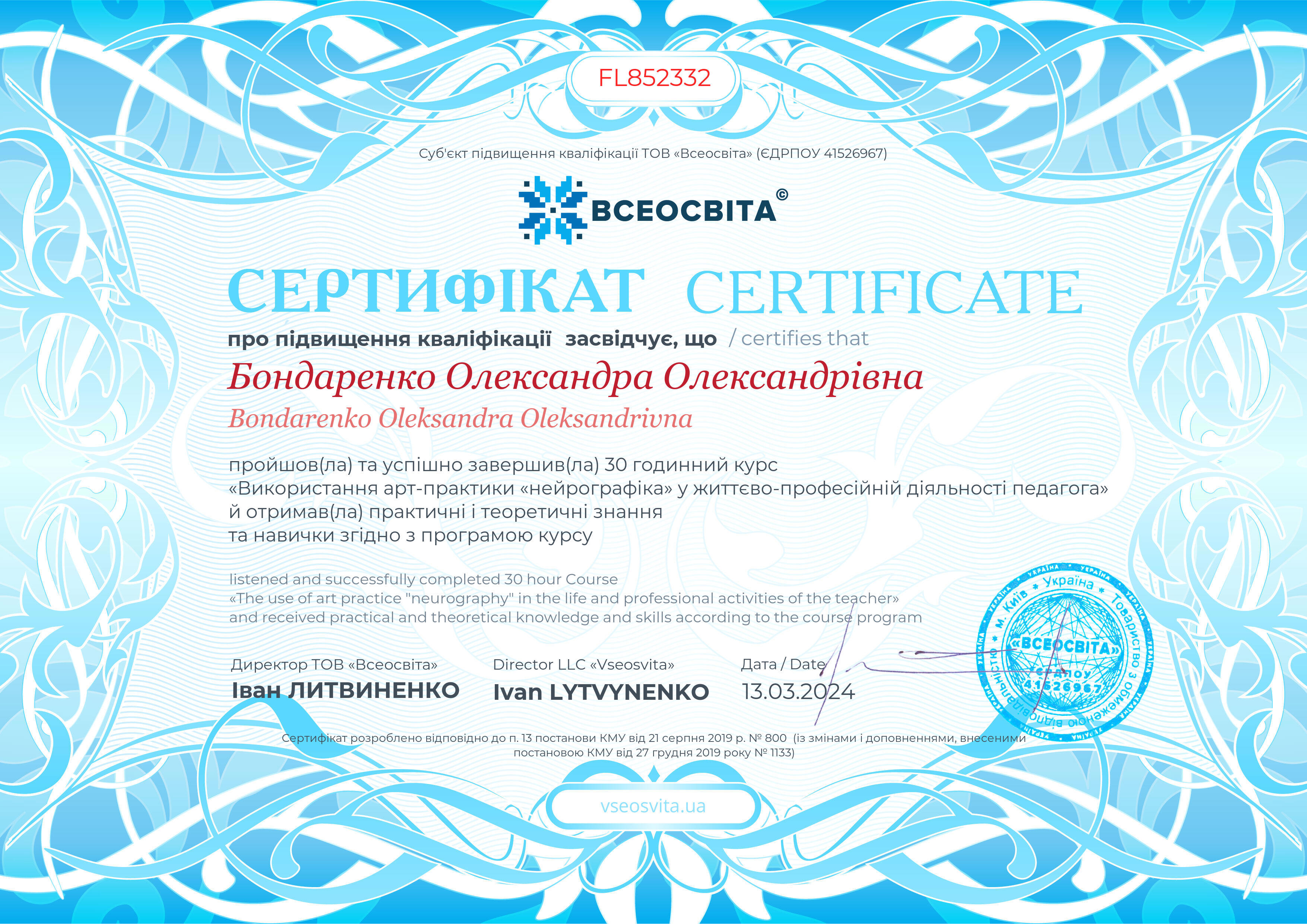 13.03.2024, Кількість годин - 30
