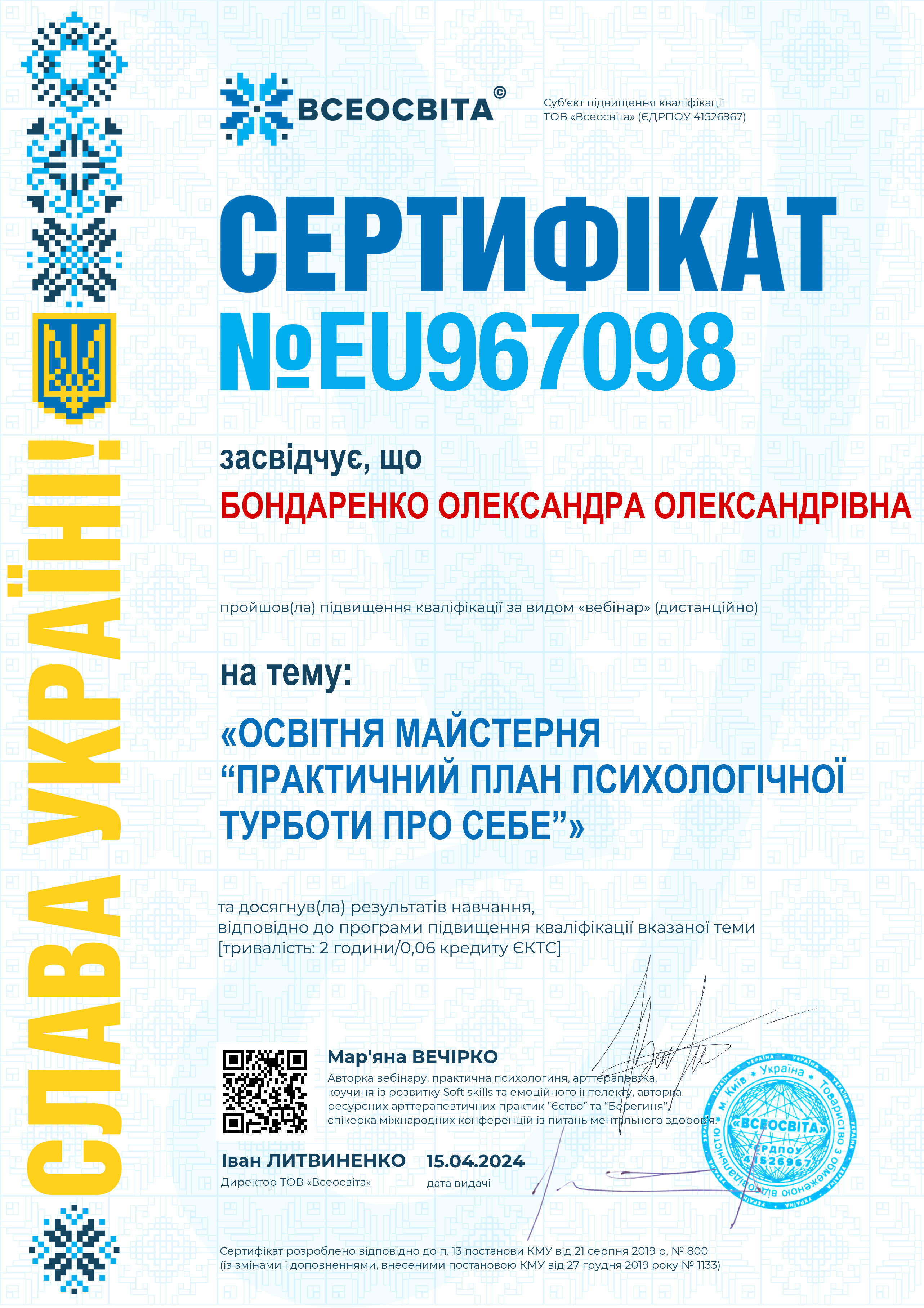 12.04.2024, Кількість годин - 10