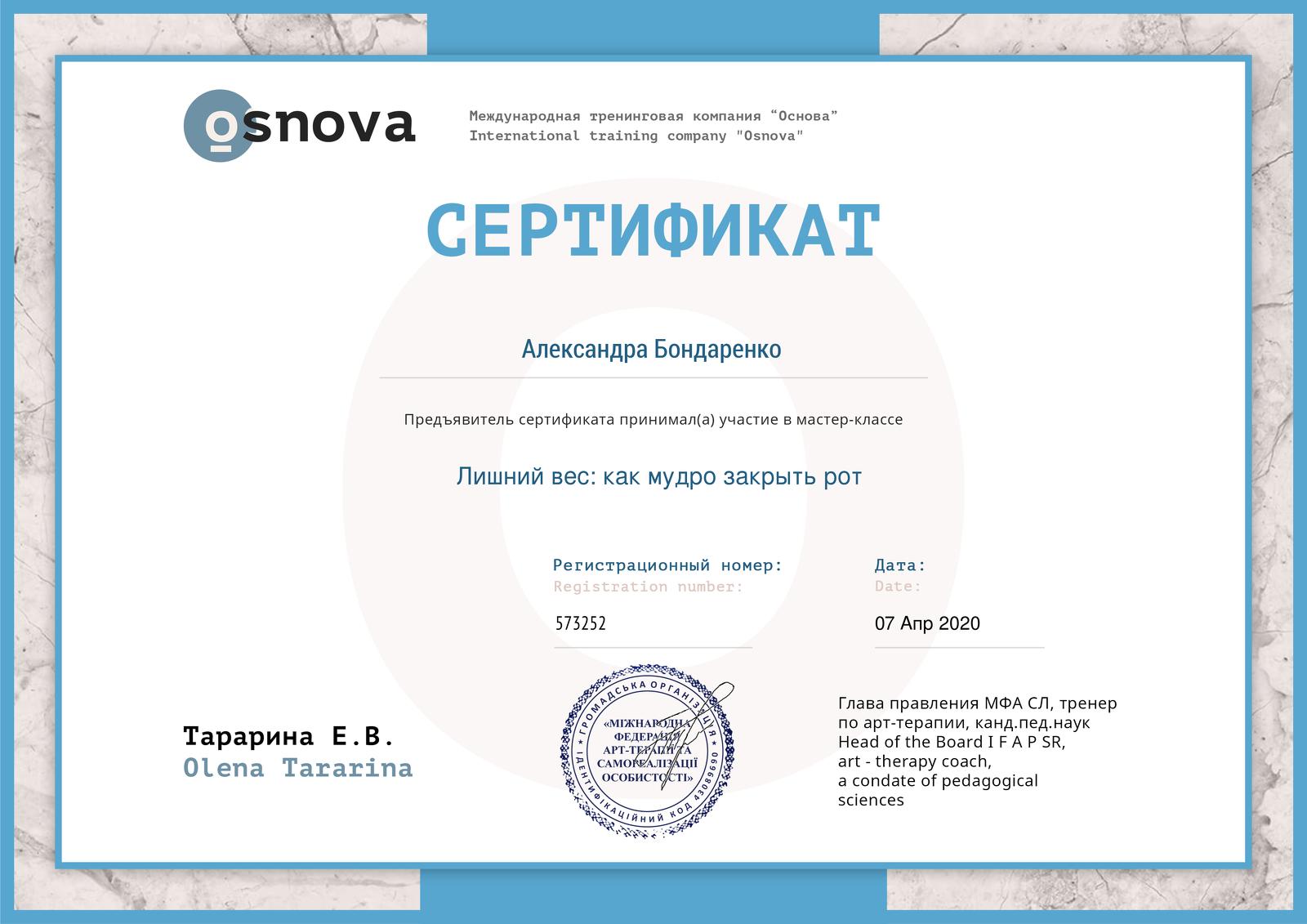 Олександра  Бондаренко