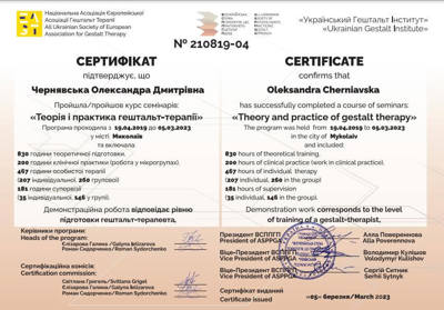 II рівень навчання гештальт-терапії - сертифікація - березень 2023