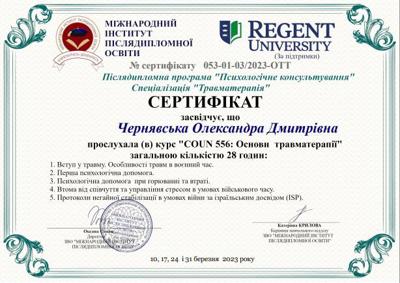 МНУ ім. В.О. Сухомлинського (магістратура), спеціалізація: «Психологія» (2024)