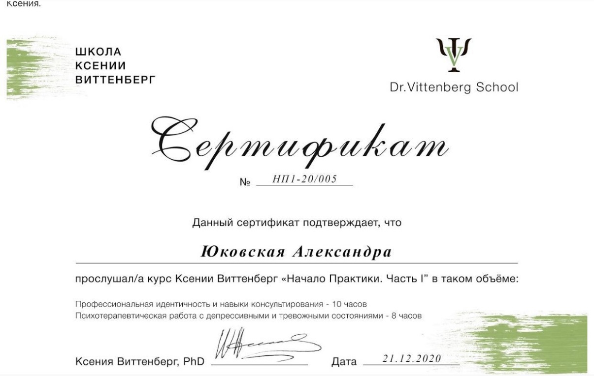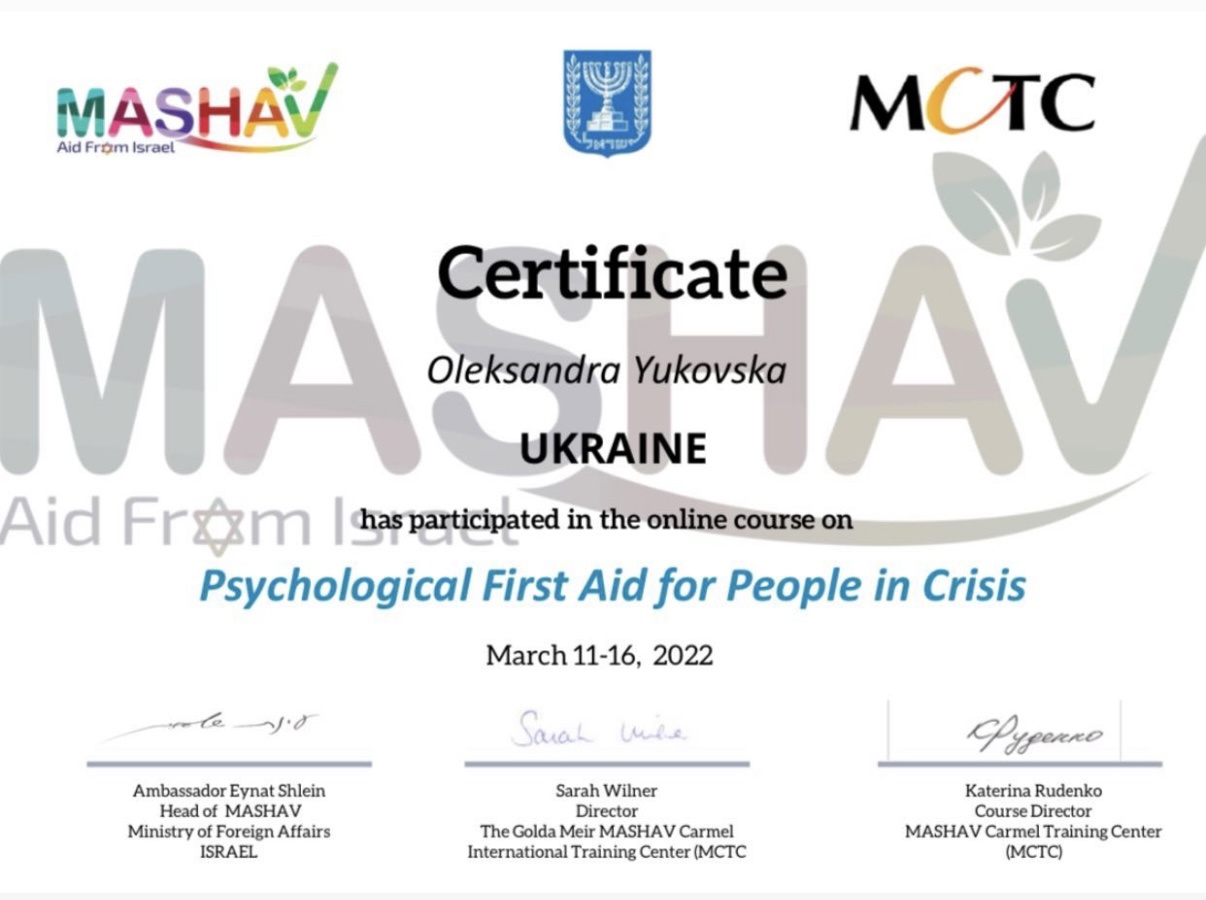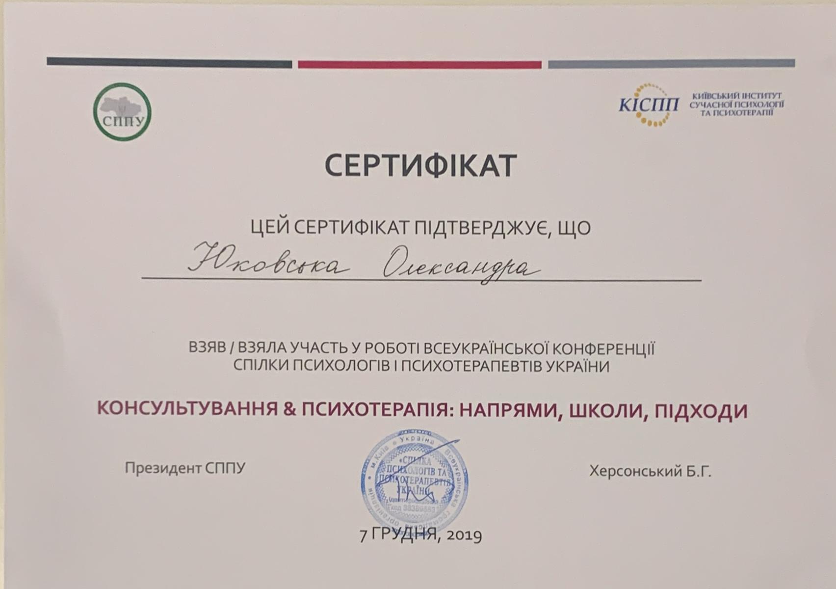 Я отримала магістра клінічної психології в Київському Інституті Сучасної Психології та Психотерапії.