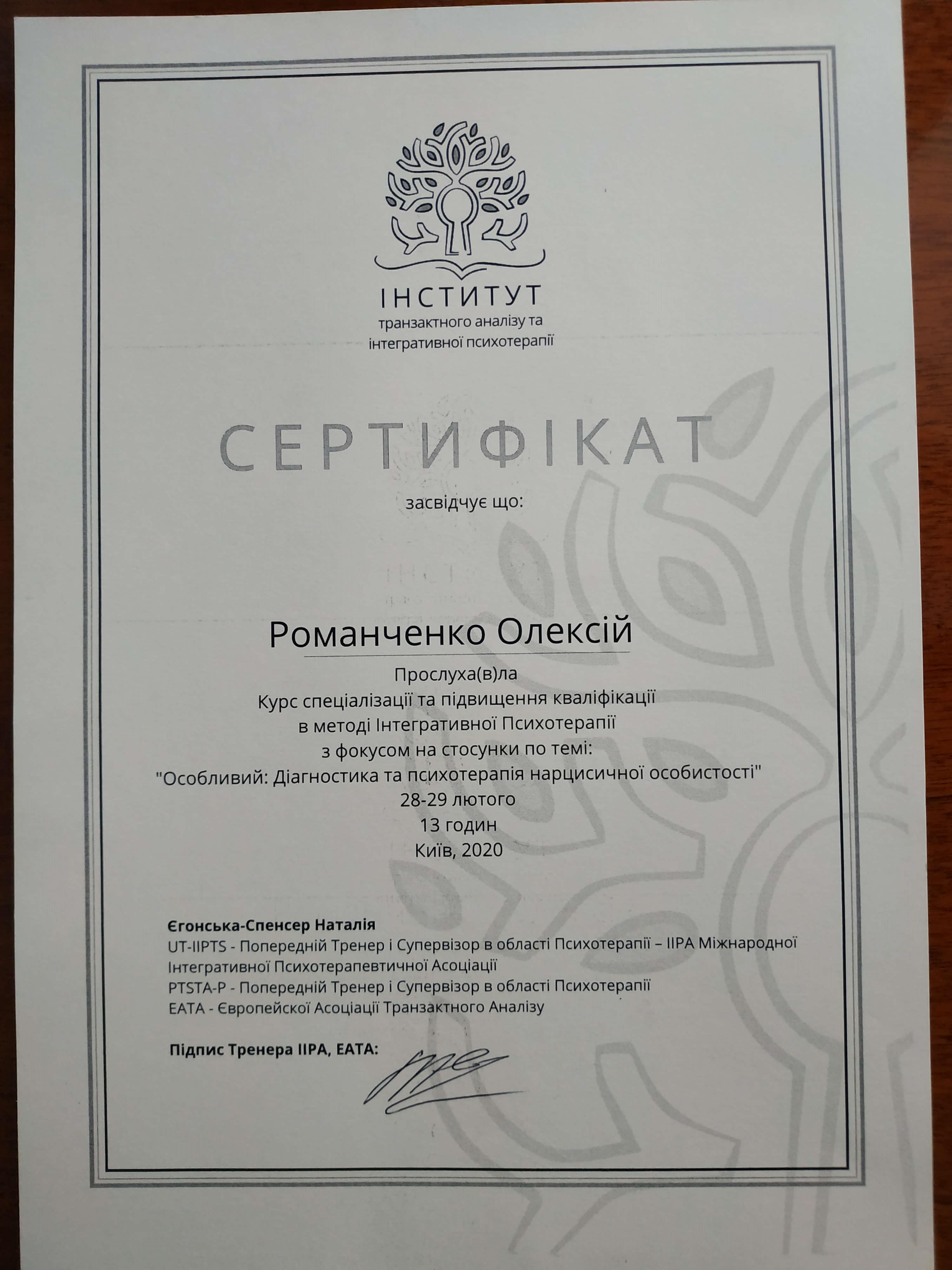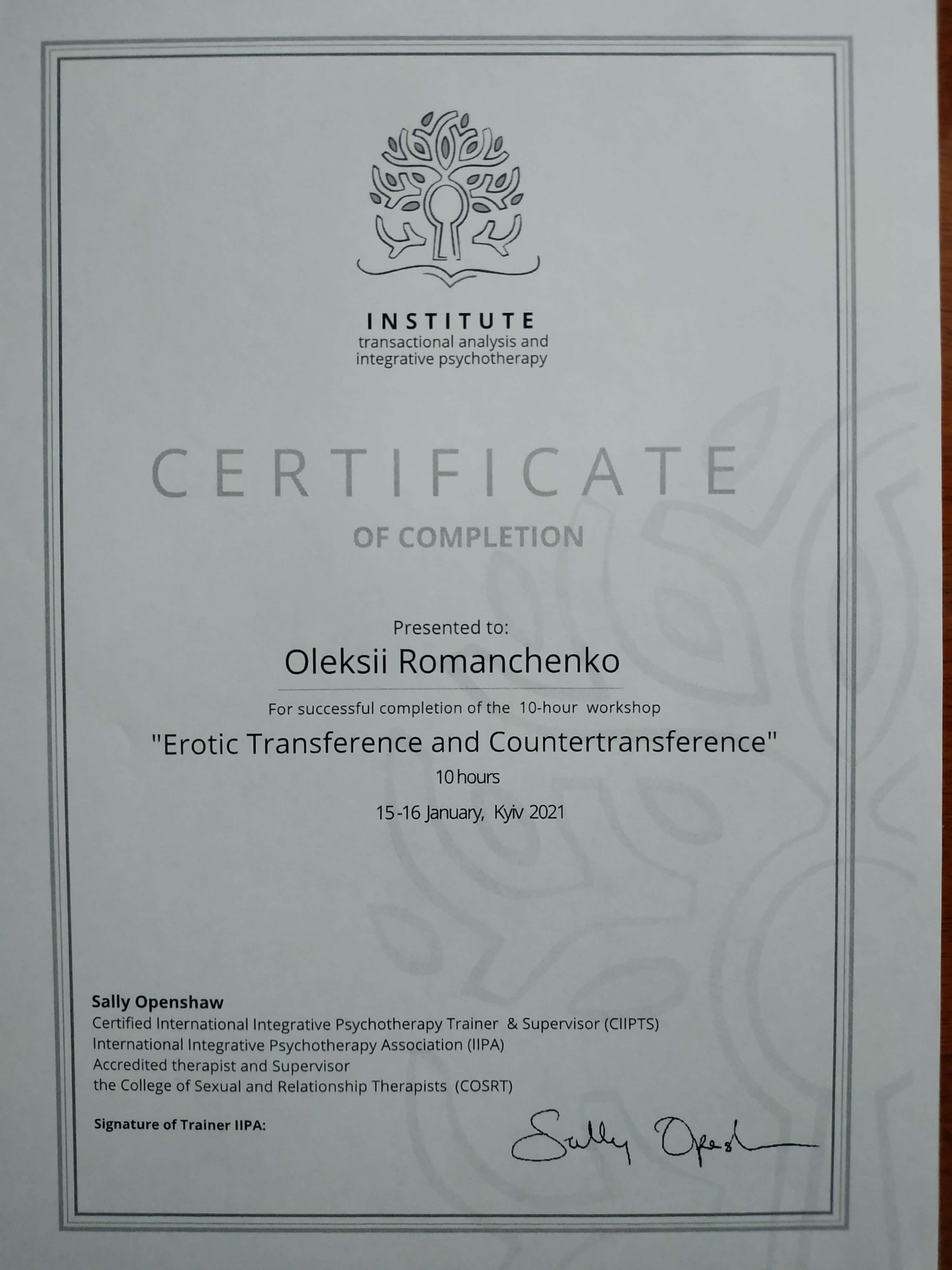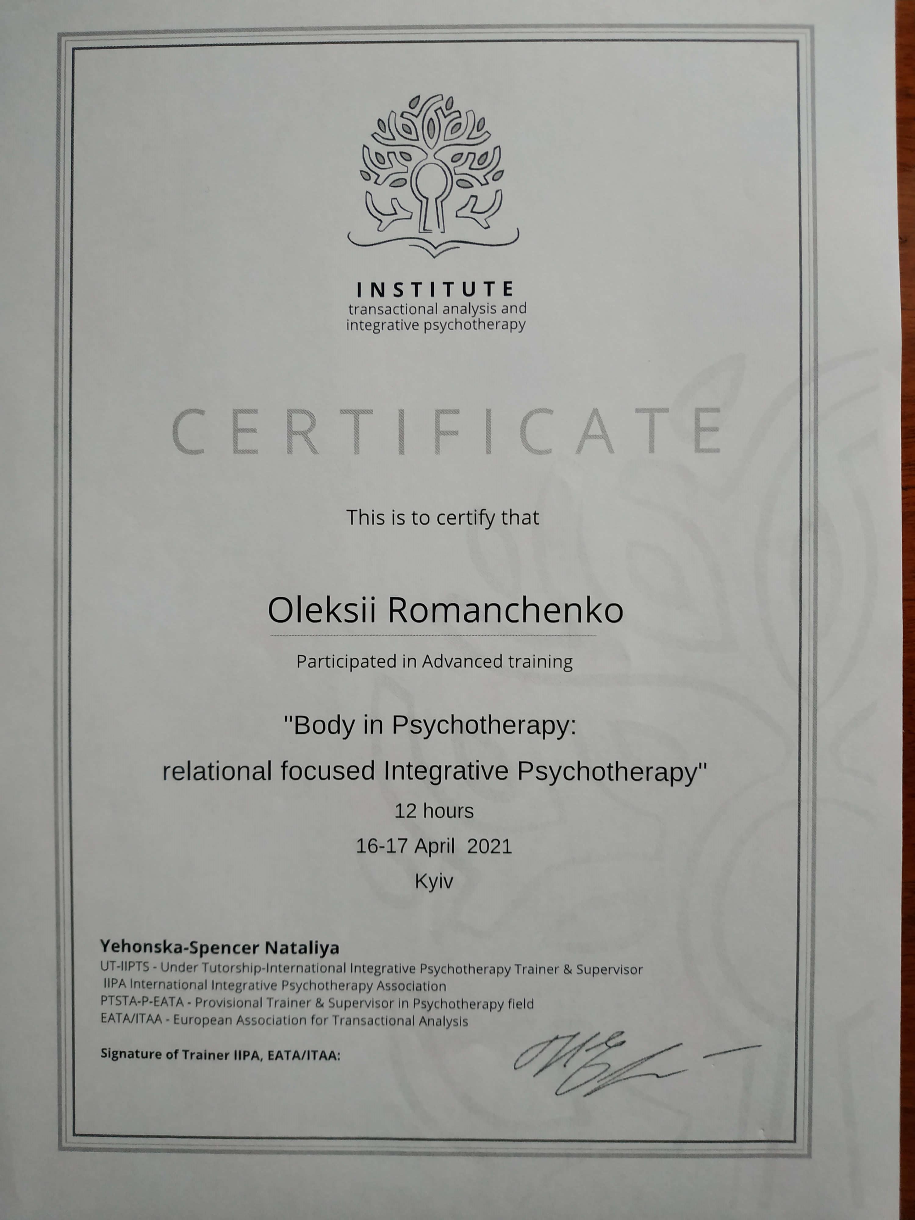 Інститут транзактного аналізу та інтегративної психотерапії, навчання інтегративної психотерапії з фокусом на відносини 420 годин.