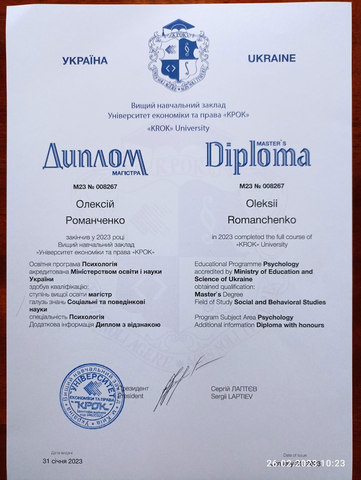 Український державний університет "КРОК" спеціальність "Психологія"