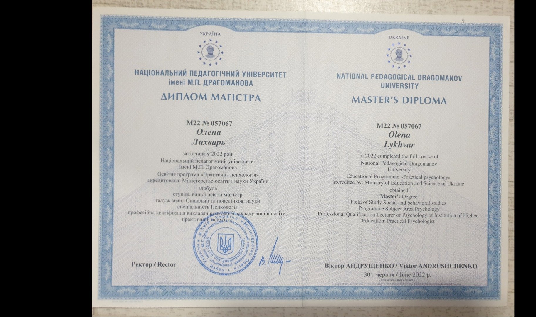 Мені 43 роки, магістр психології, психотерапевт напрямків «транзактний аналіз», «нейролінгвістичне програмування».