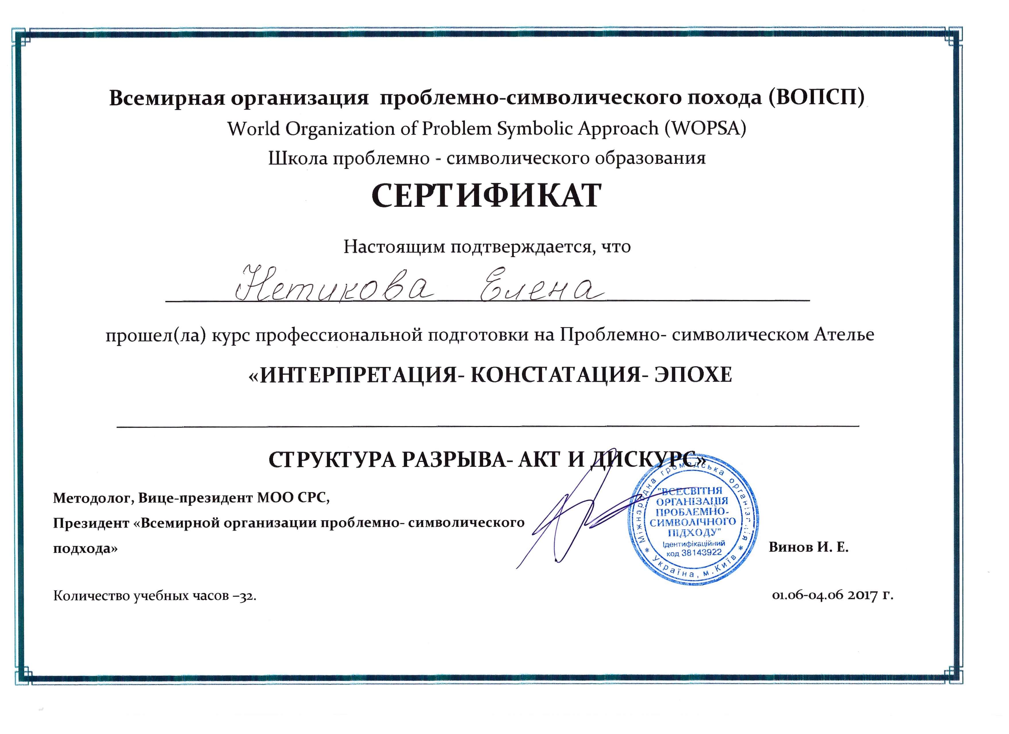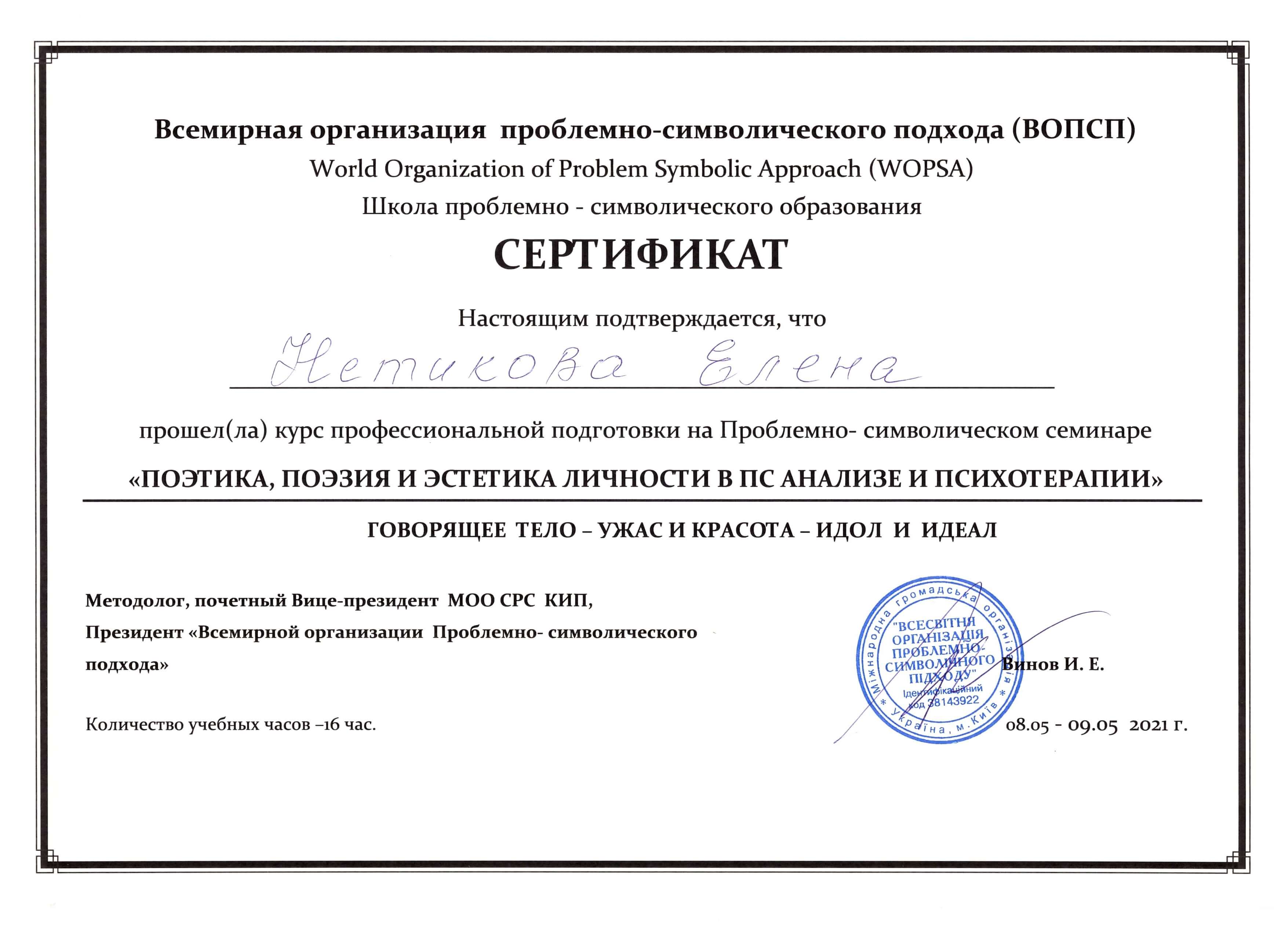 Завдяки роботі з досвідченими психотерапевтами та аналітиками я змогла прийняти ті травматичні події, з якими я стикалася багато разів у своєму житті та які визначали мої життєві позиції. Я змогла прийти в точку, з якої мені доступний виважений, обдуманий і вільний вибір свого життя, залишивши позаду компульсивні відігравання симптомів.