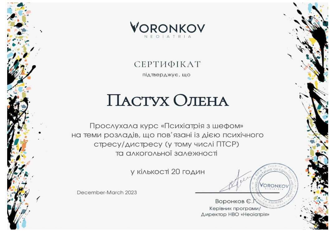 -курс «Психіатрія з шефом» на теми розладів, що повʼязані із дією психічного