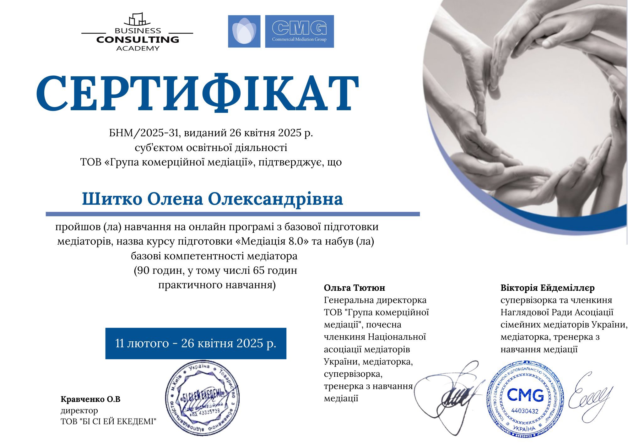 2022 рік Робота з ПТСР в умовах воєнного часу (Міжнародна тренінгова компанія "Основа") - сертифікат 46 год