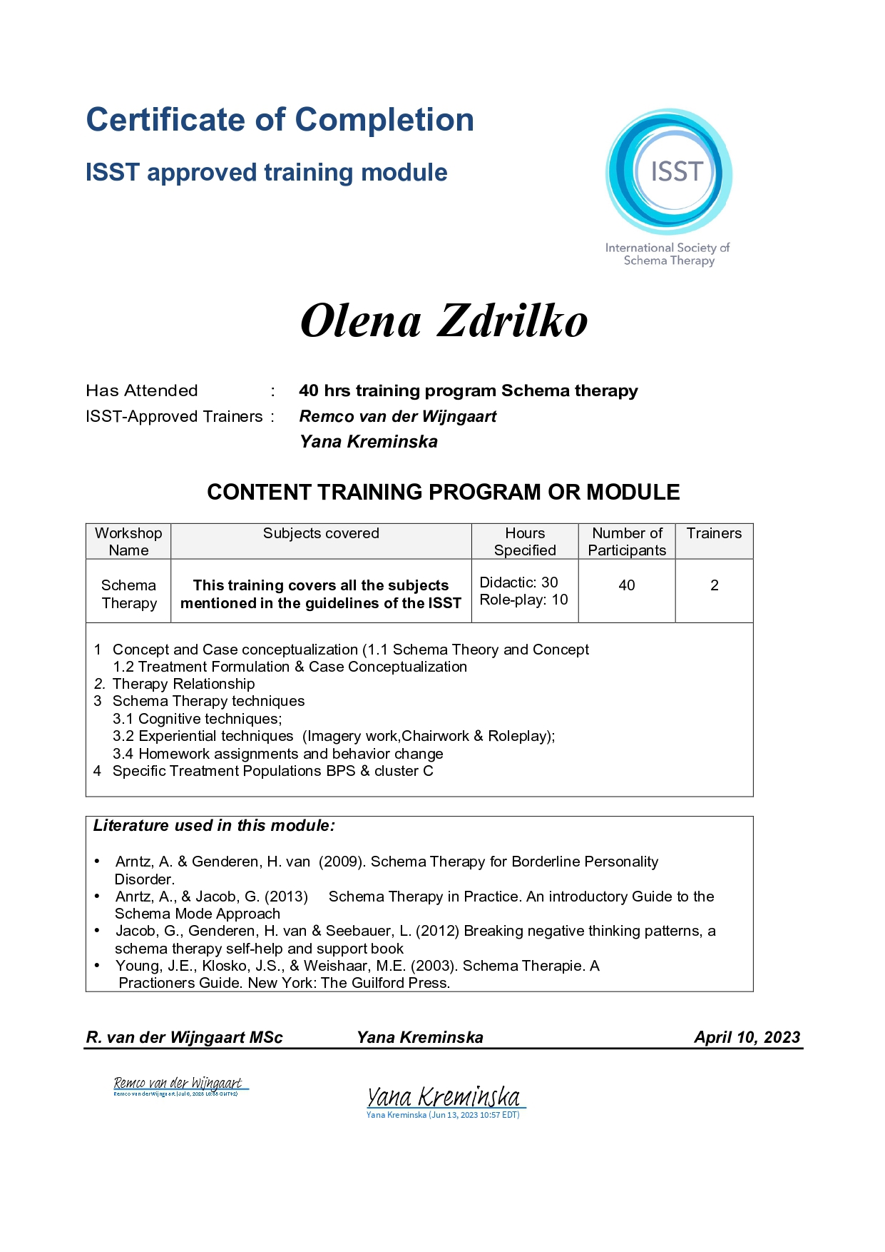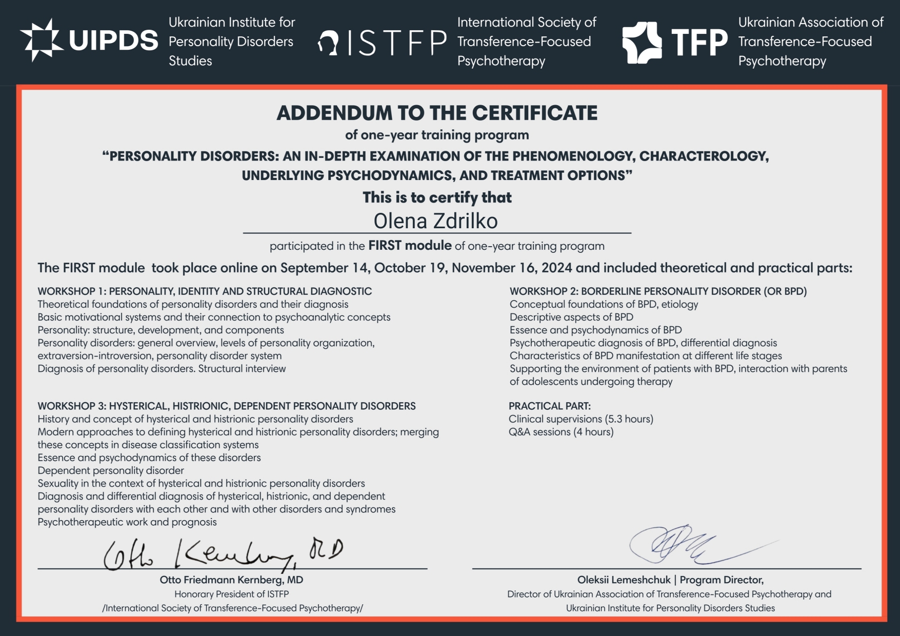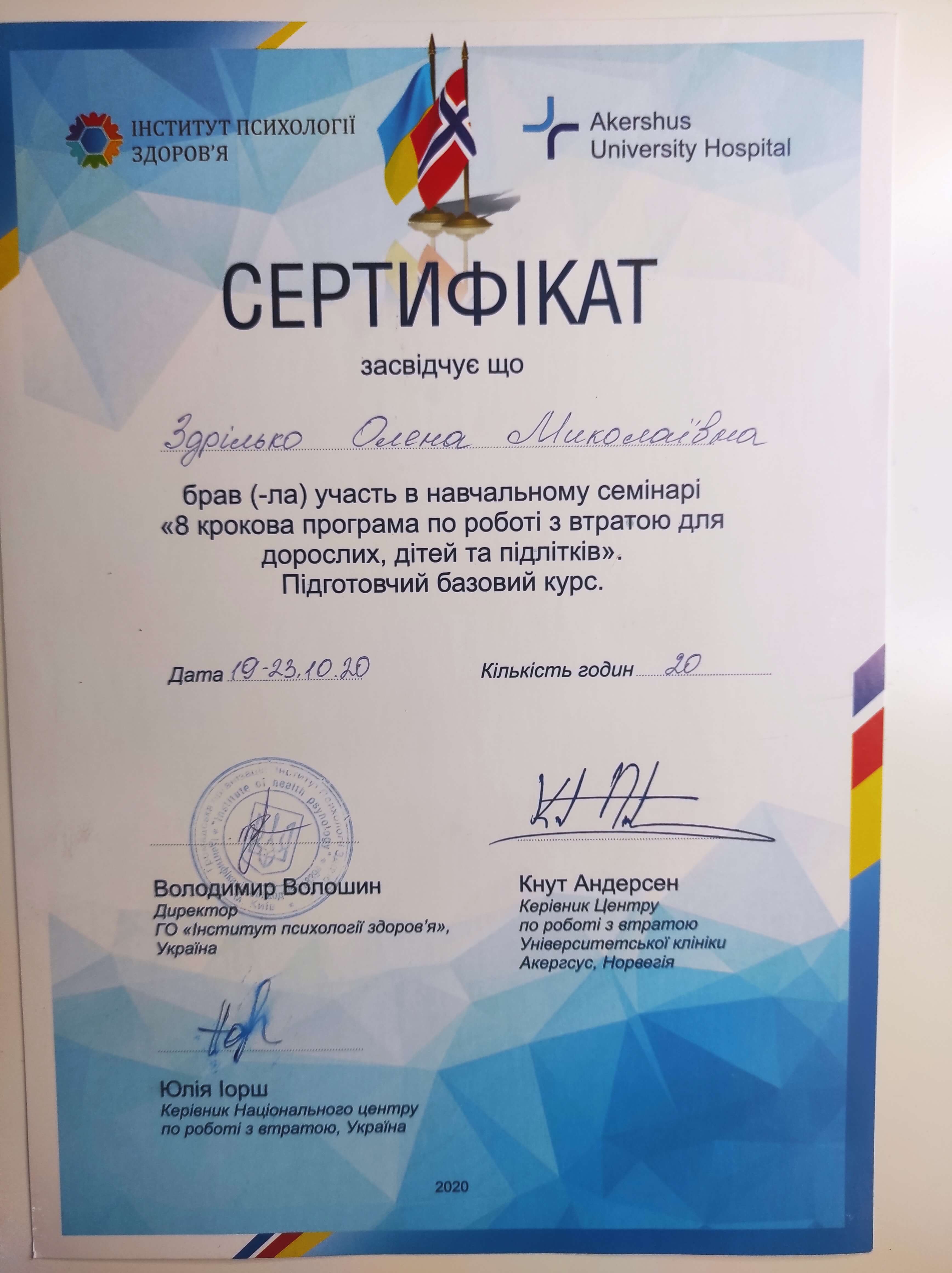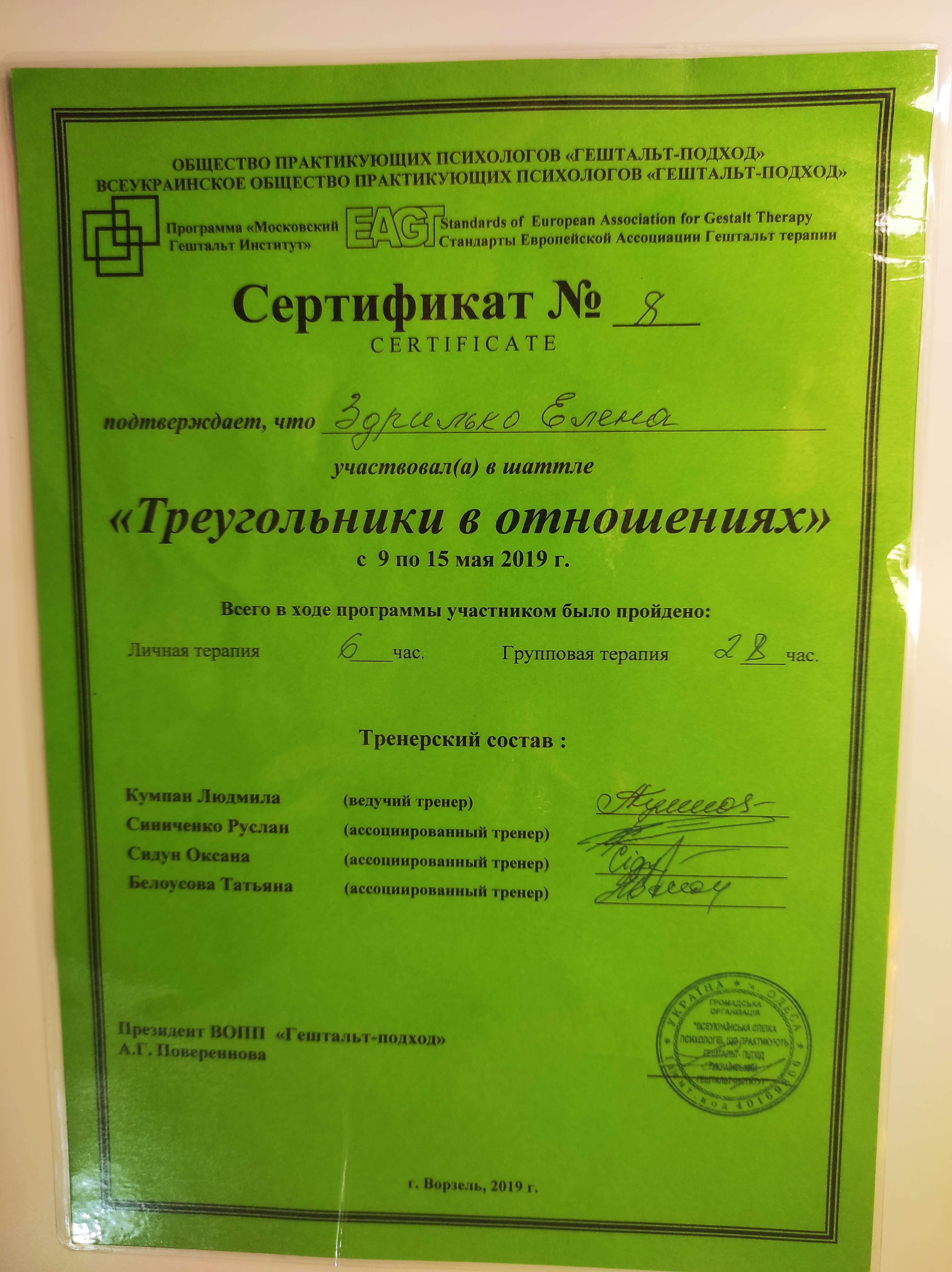 В процесі навчання в Норвезькому Гештальт Інституті 3 сходинка
