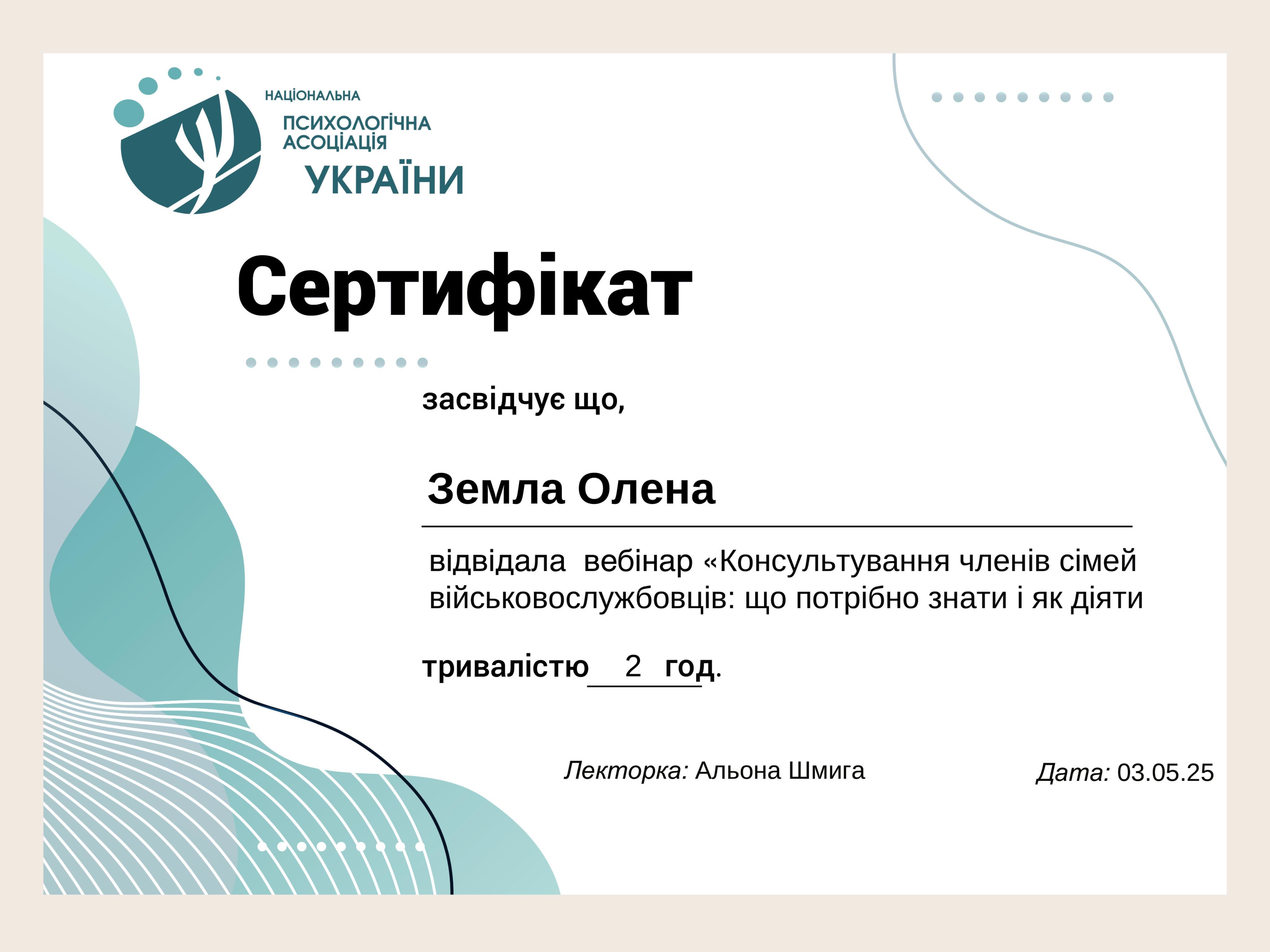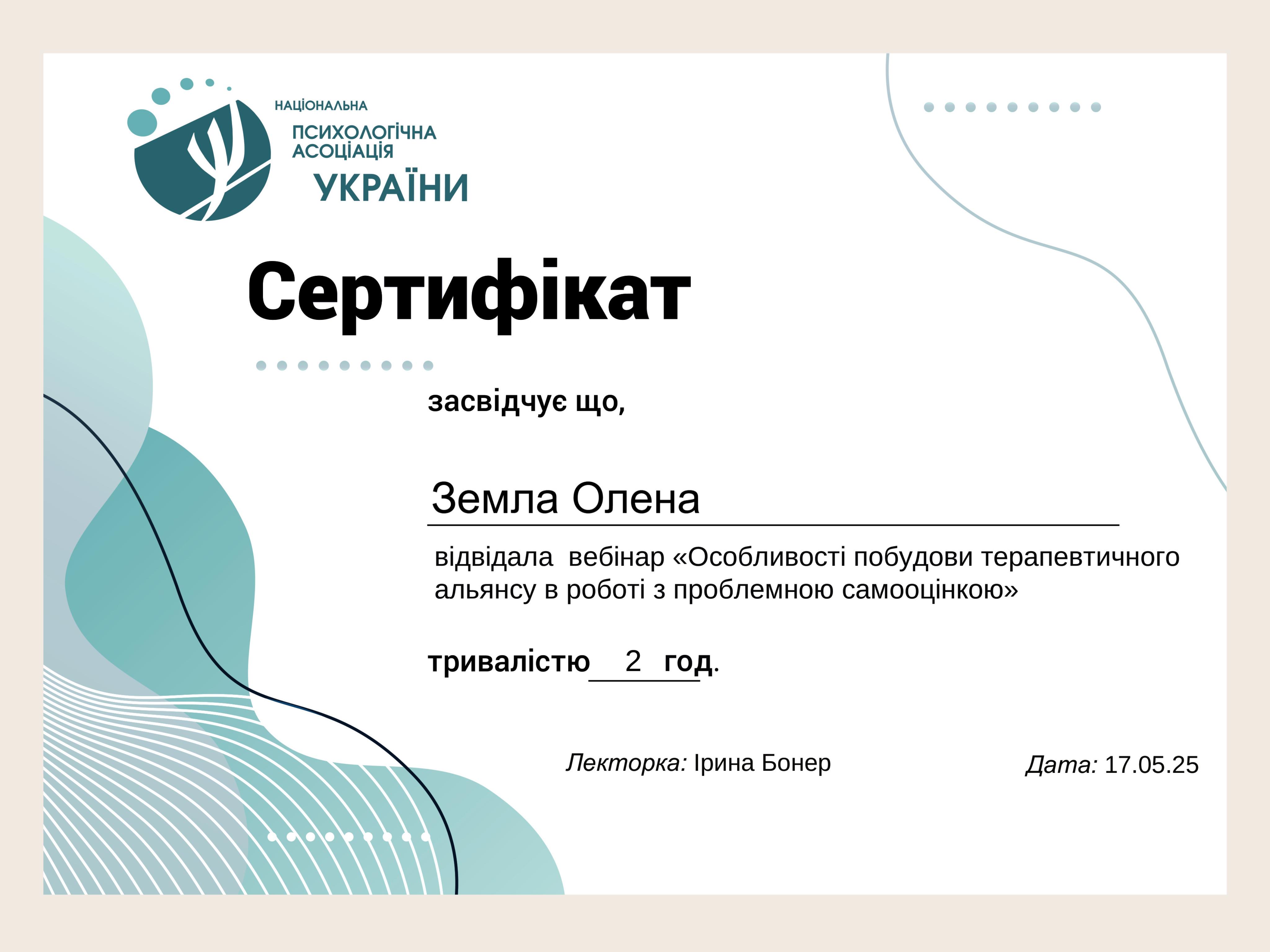 Наразі здобуваю кваліфікацію з клінічної психології при Харківському національному університеті ім. В. Н. Каразіна