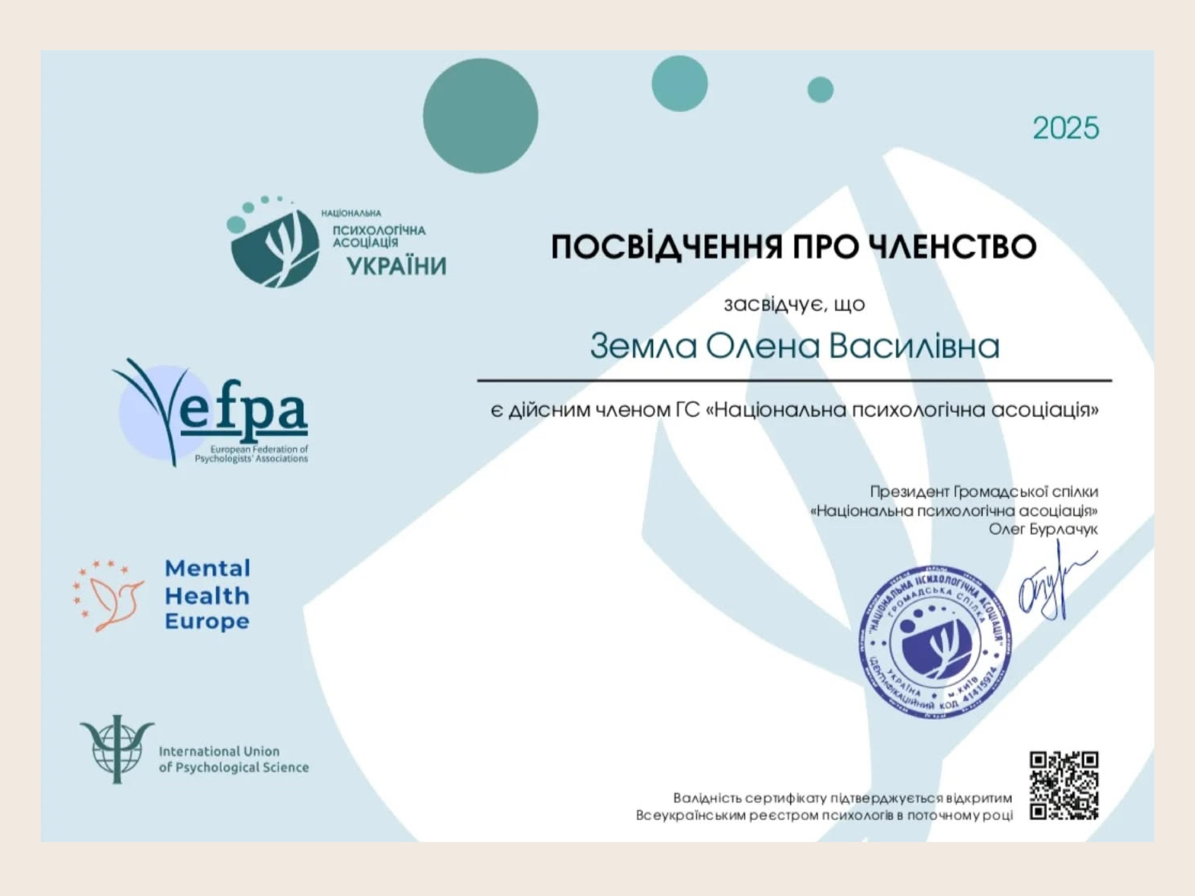Вітаю! Мене звати Олена. Мій шлях у психології почався з особистого прагнення краще зрозуміти себе, людей навколо та продовжився прагненням допомогти іншим знаходити внутрішню рівновагу та гармонію.