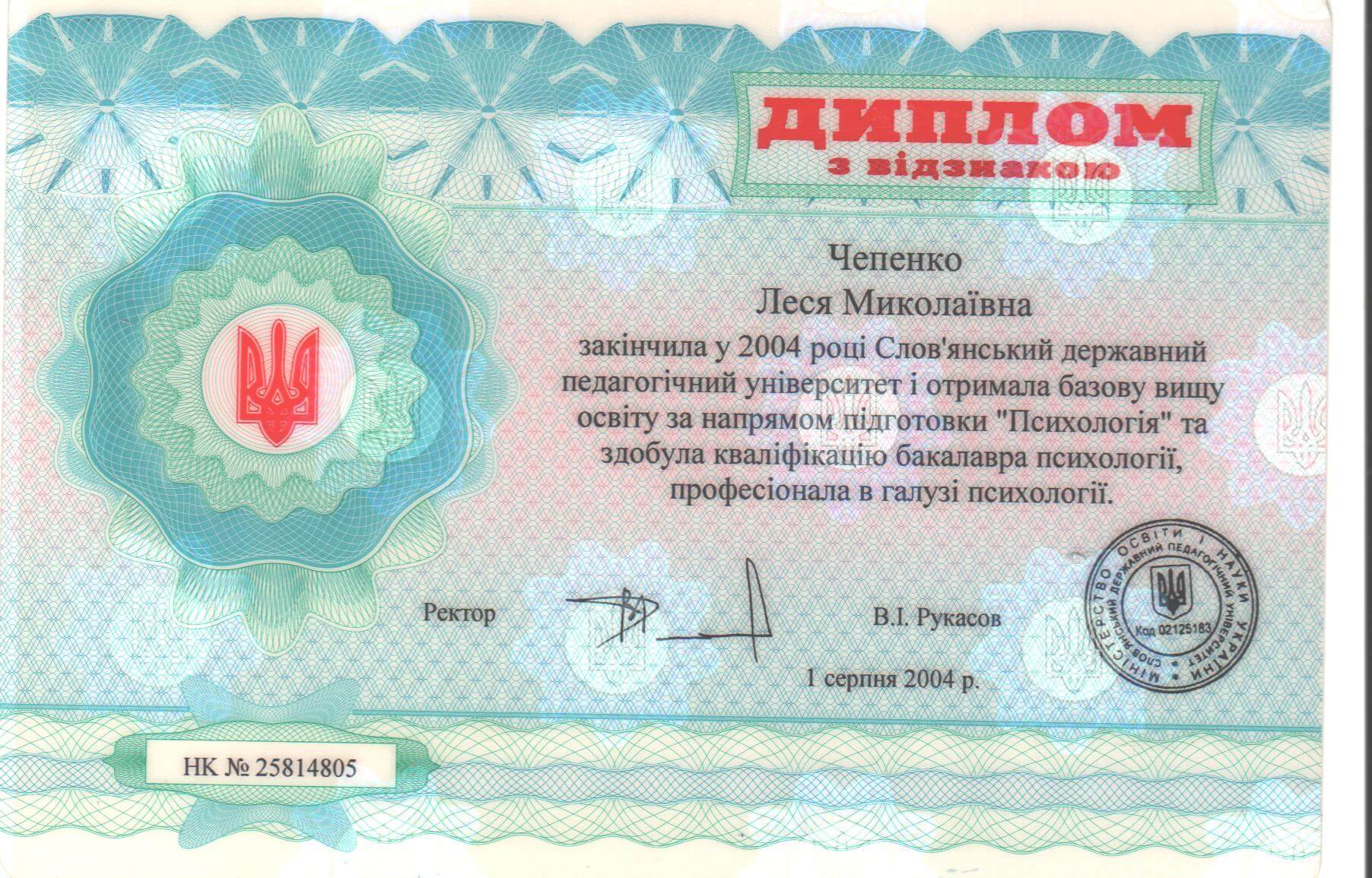 Освіта: 2000-2005 рр. – Слов’янський Державний педагогічний університет, спеціальність за дипломом «Психолог».