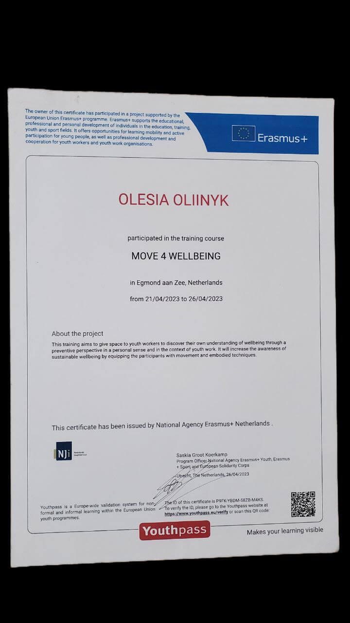 21.04.23 – 26.04.23 Erasmus+, Egmond aan Zee (Netherland) training course ''MOVE 4 WELLBEING'. (Нідерланди. Тренінговий курс для фахівців, що працюють з молоддю "Рух заради добробуту")