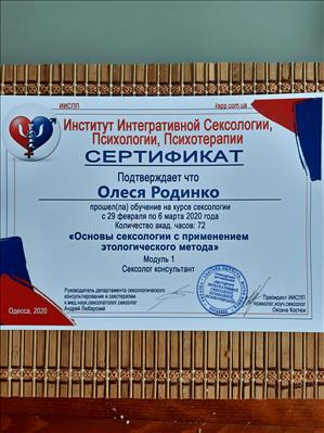"Основи сексології із застосуванням етологічного методу" Інститут Інтегративної сексології, психології, психотерапії.