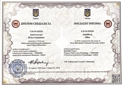 Якось консультації психолога змінили моє життя. Психолог допоміг мені зрозуміти, що у складних життєвих ситуаціях закладено шанс на зміни на краще. Життя наповнилося новими смислами та інтересами, що дозволяють не лише жити щасливим життям, а й допомагати у цьому іншим людям.