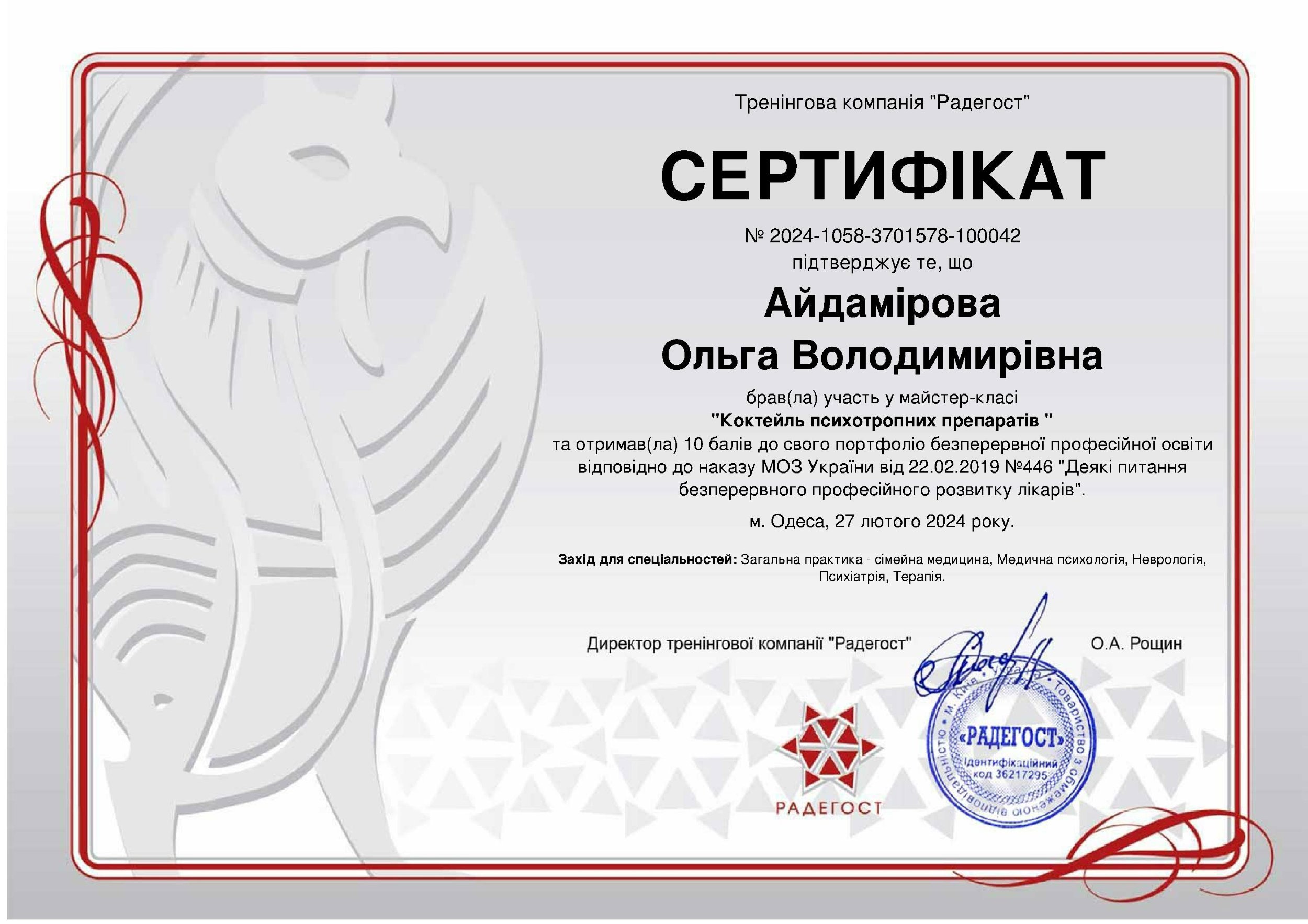 Сертифікати: