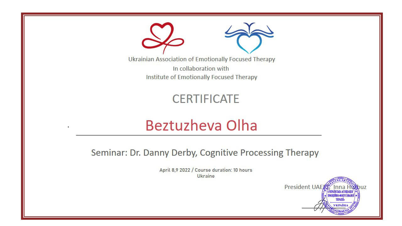 5. Сертифікат "Когнітивно процесуальна терапія", 2022 р.