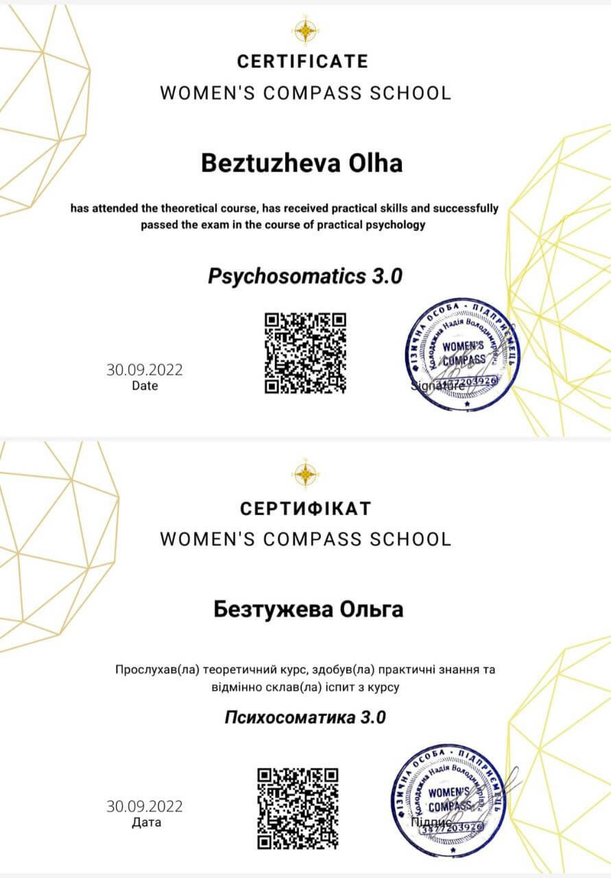 7. Сертифікат "Психосоматика", 2022 р.