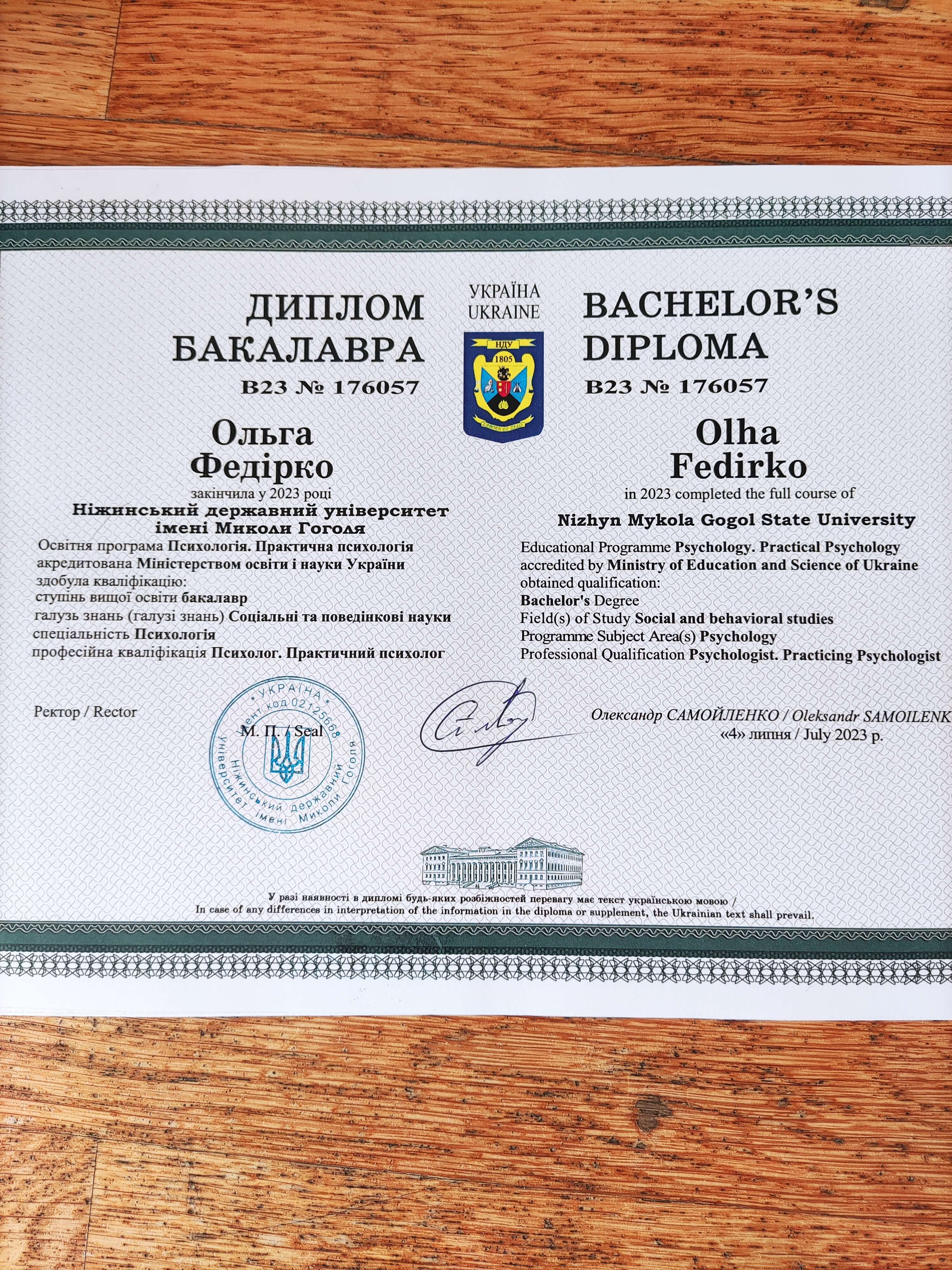 Мене звати Ольга, я працюю в психології з 2014 року.