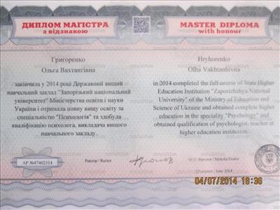 Запорожский Национальный Университет Магистр психологии. Киевский Гештальт Университет гештальтерапевт.