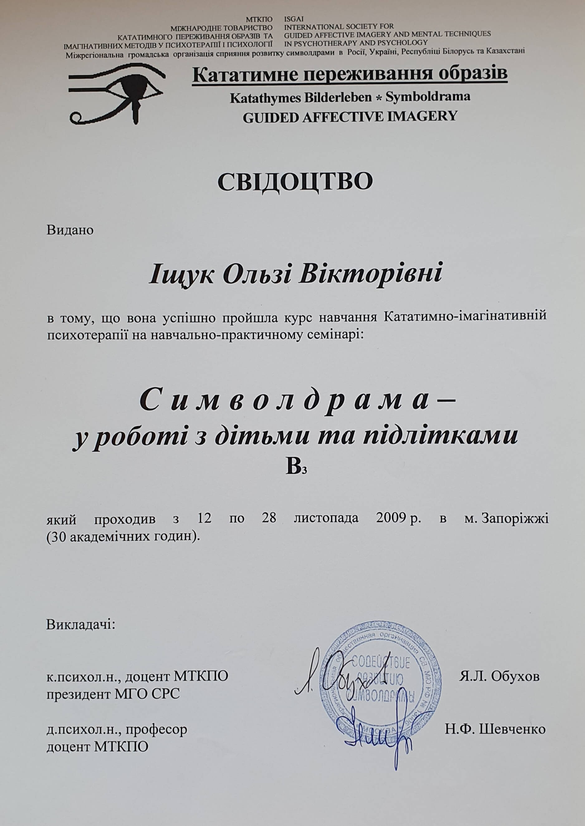 Кататимно-імагінативній психотерапії на навчально-практичному семінарі: Символдрама - у роботі з дітьми та підлітками