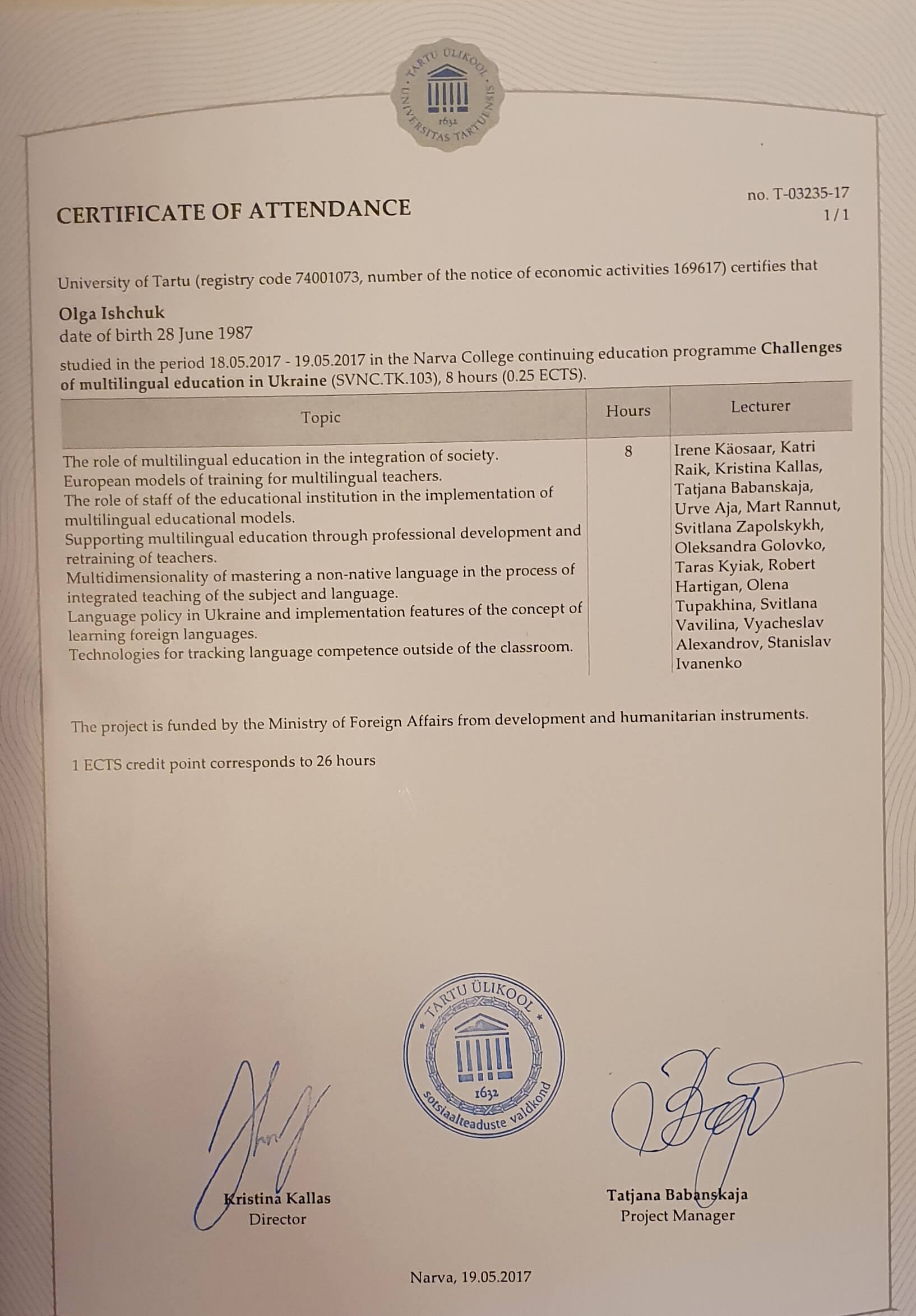 18.05.2017 - 19.05.2017, Кількість годин - 8