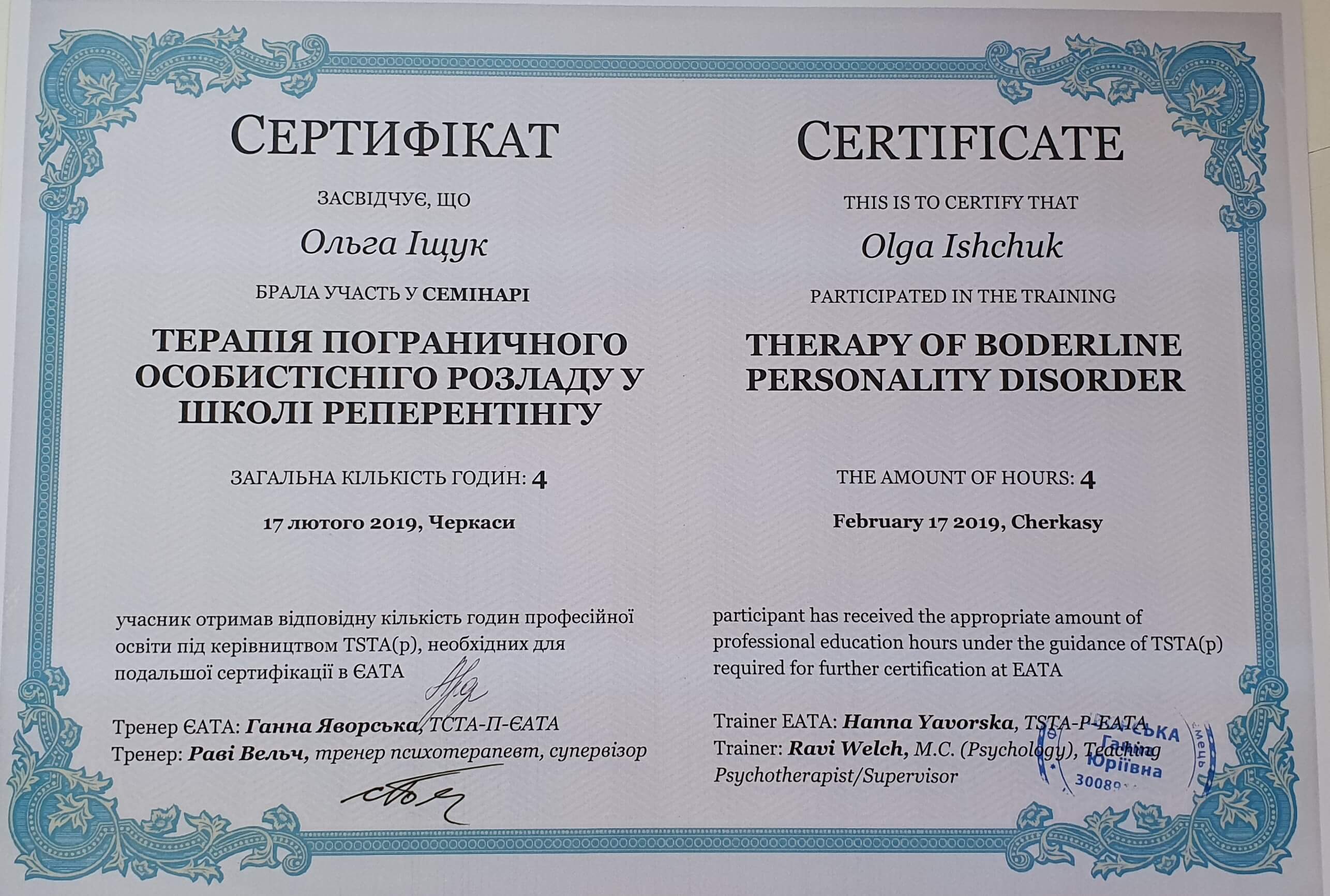 ТЕРАПІЯ ПОГРАНИЧНОГО ОСОБИСТІСНІГО РОЗЛАДУ У ШКОЛІ РЕПЕРЕНТІНГУ