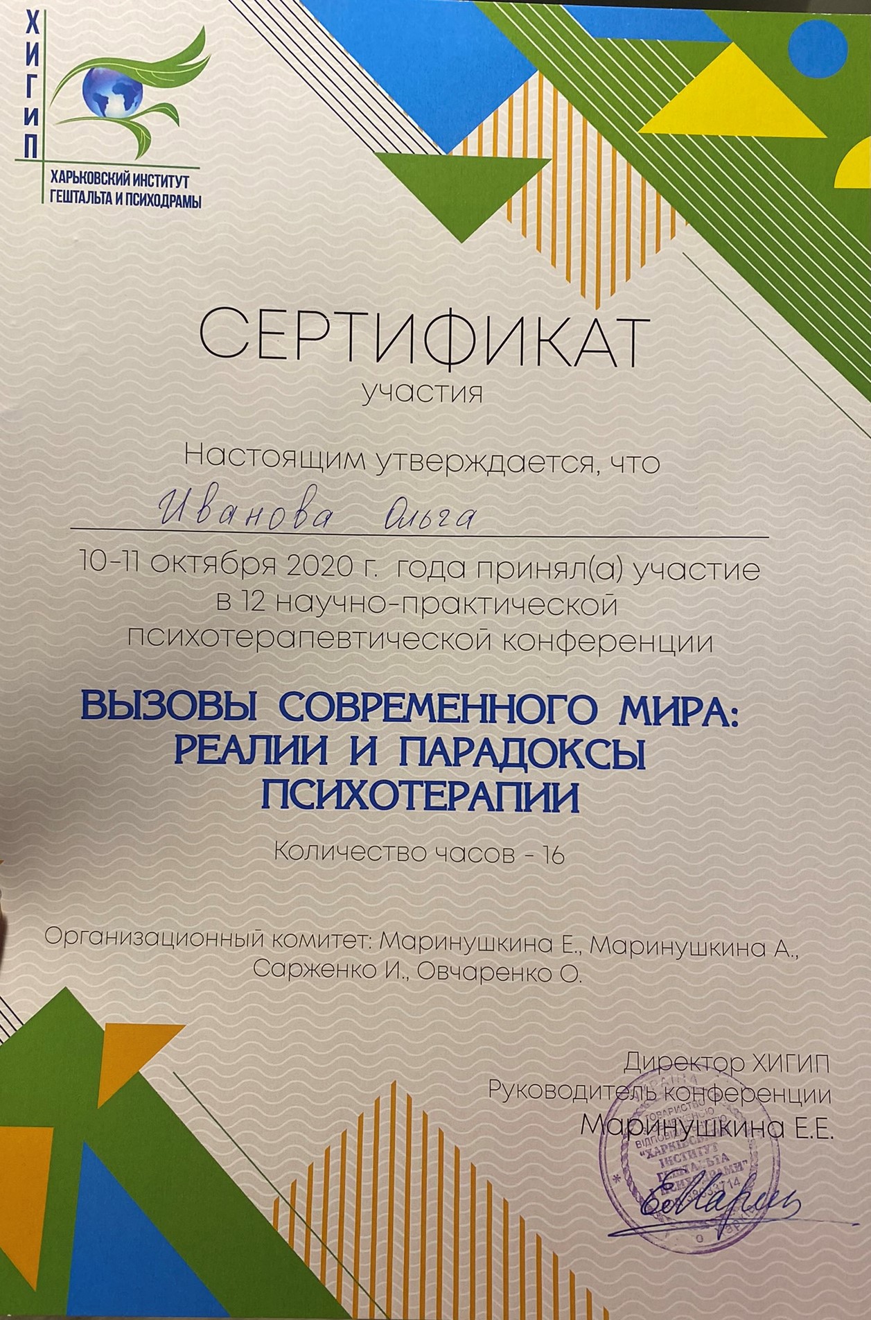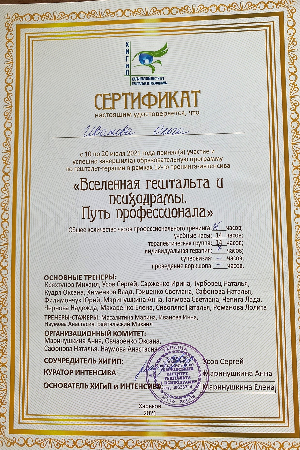 На даний момент проходжу навчання на 2 щаблі міжнародної підготовки гештальт-терапевтів у ХІГІП