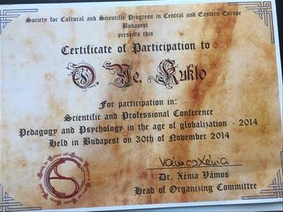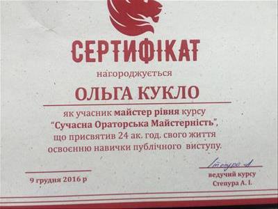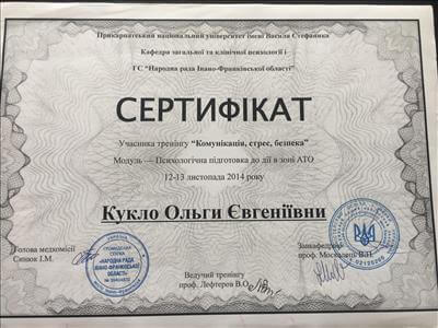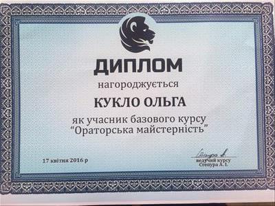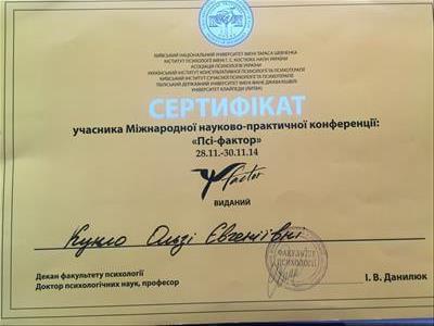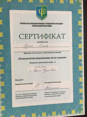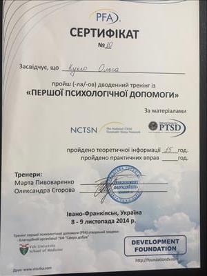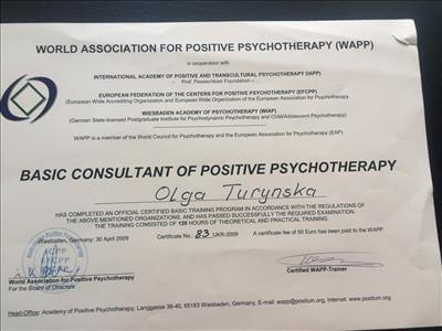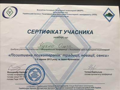 Закінчила базовий курс позитивної психотерапії.