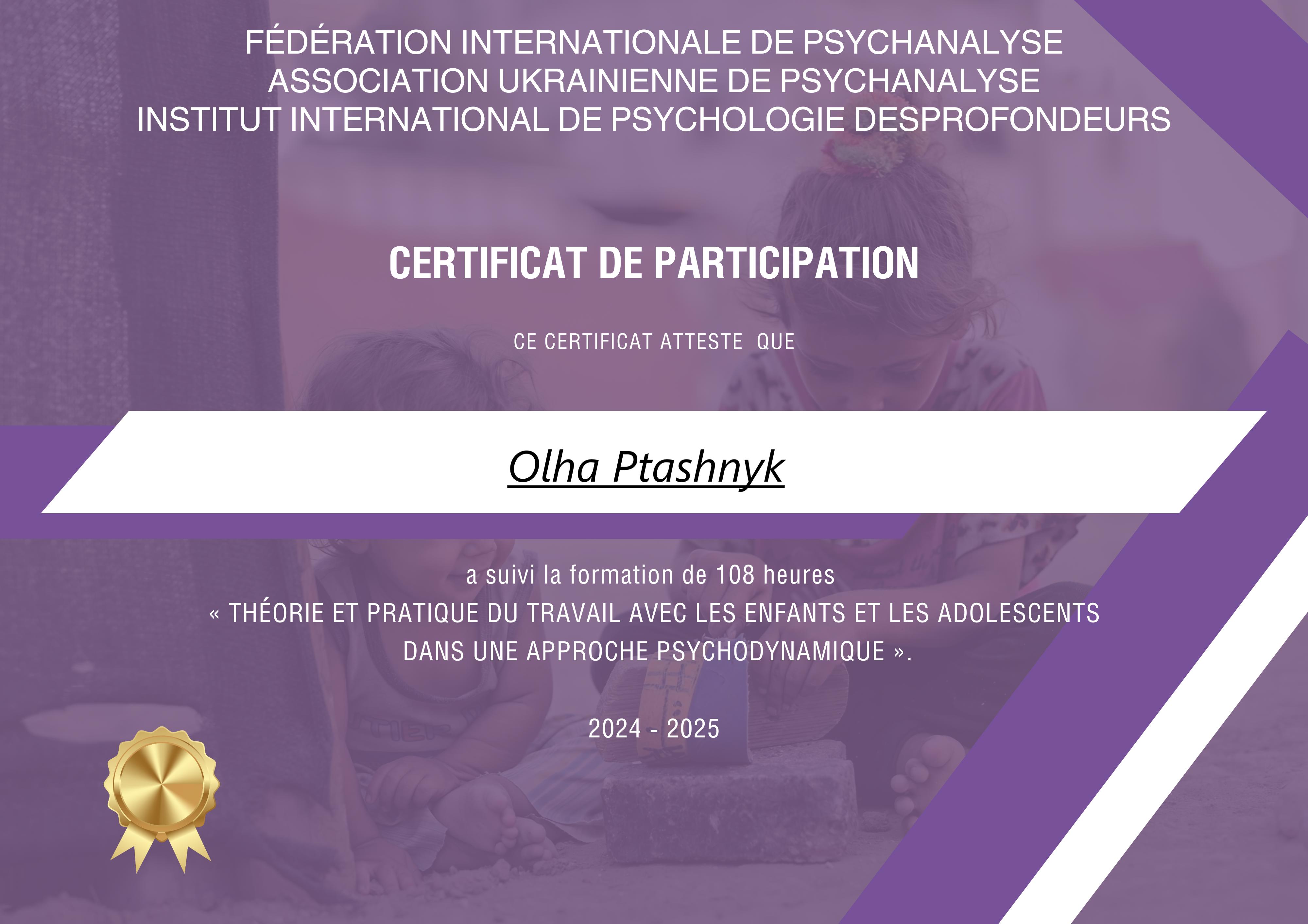Учасниця курсу Клода Шодера «Діти в умовах війни».